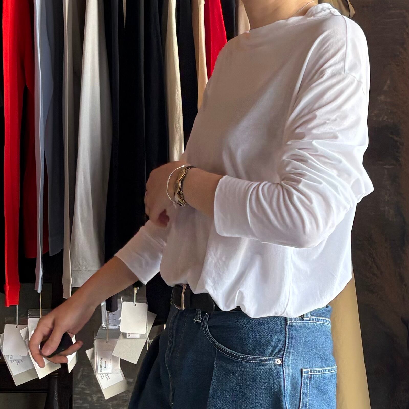 1dorzen / ペーパーコットンユニセックスロングスリーブ ホワイト
