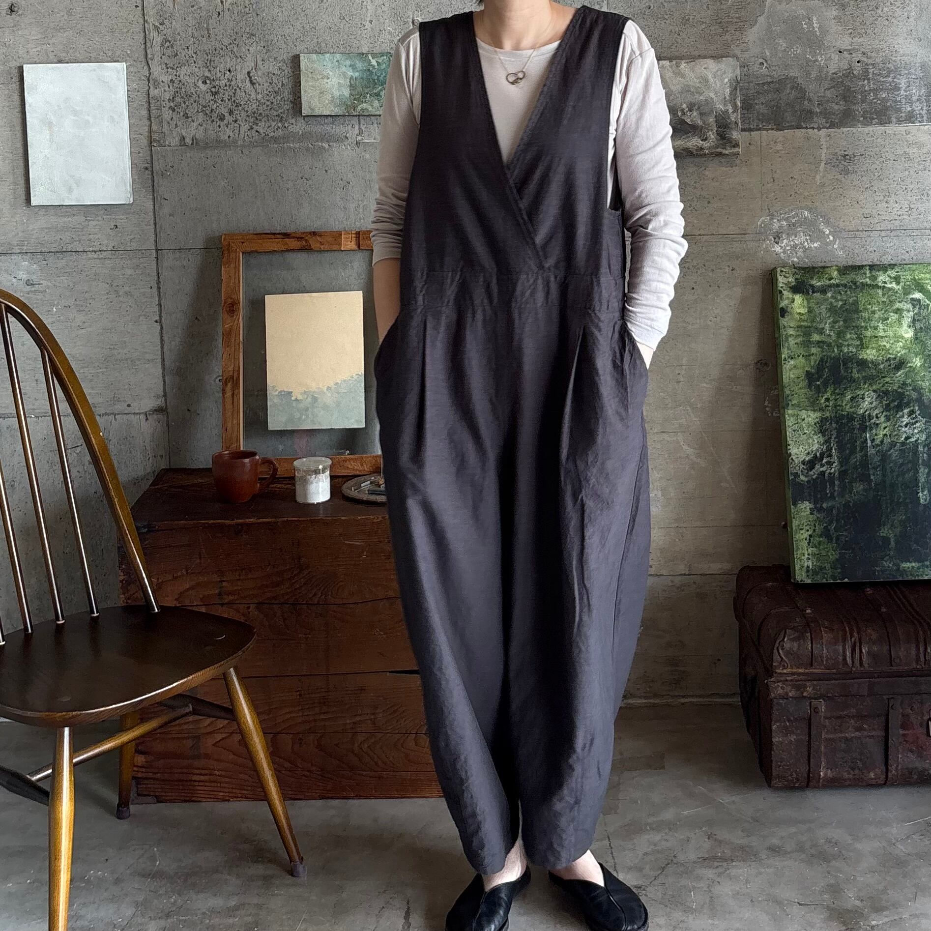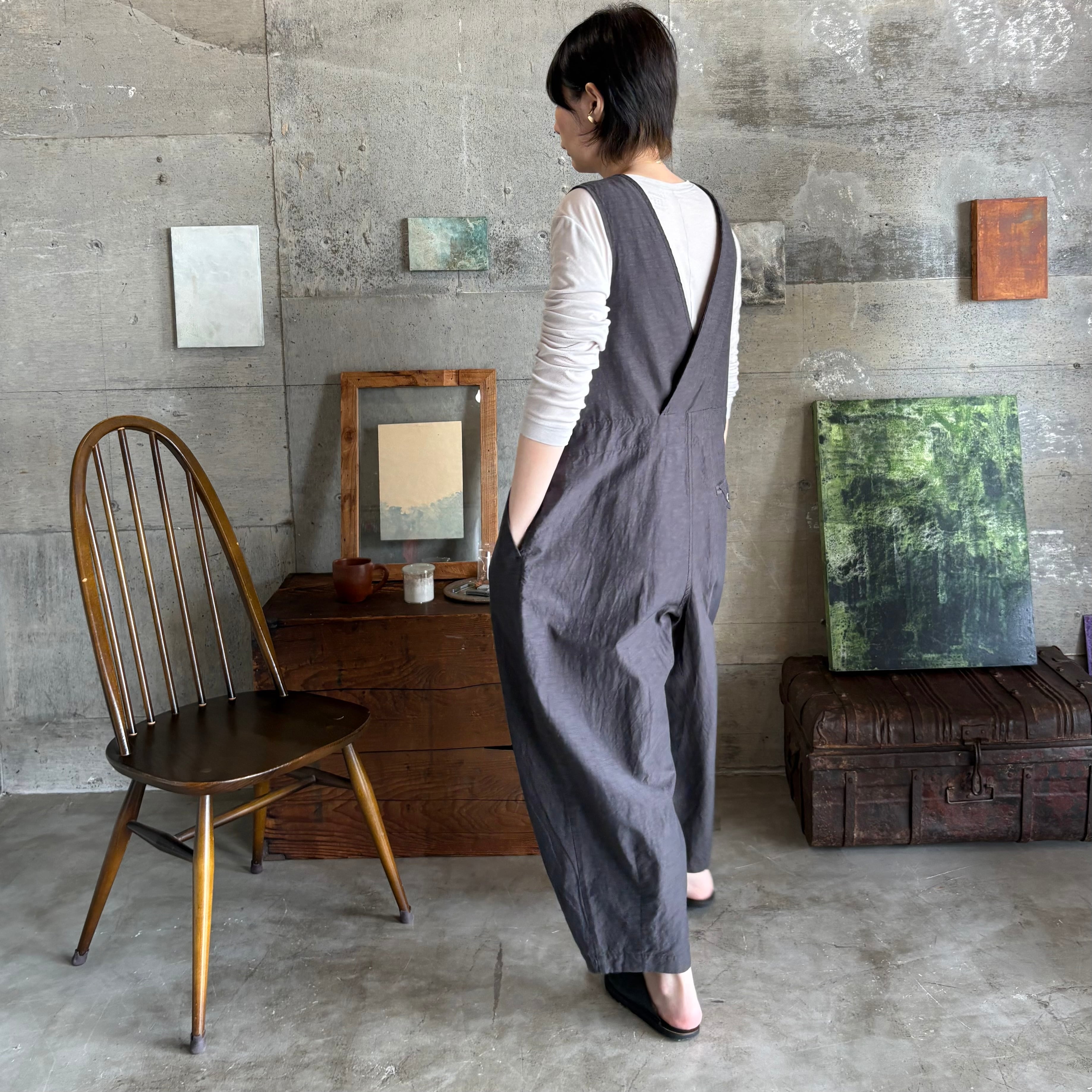 hands of creation ハンズ オブ クリエイション / CuリサイクルコットンウェザーV/Nサロペット チャコール