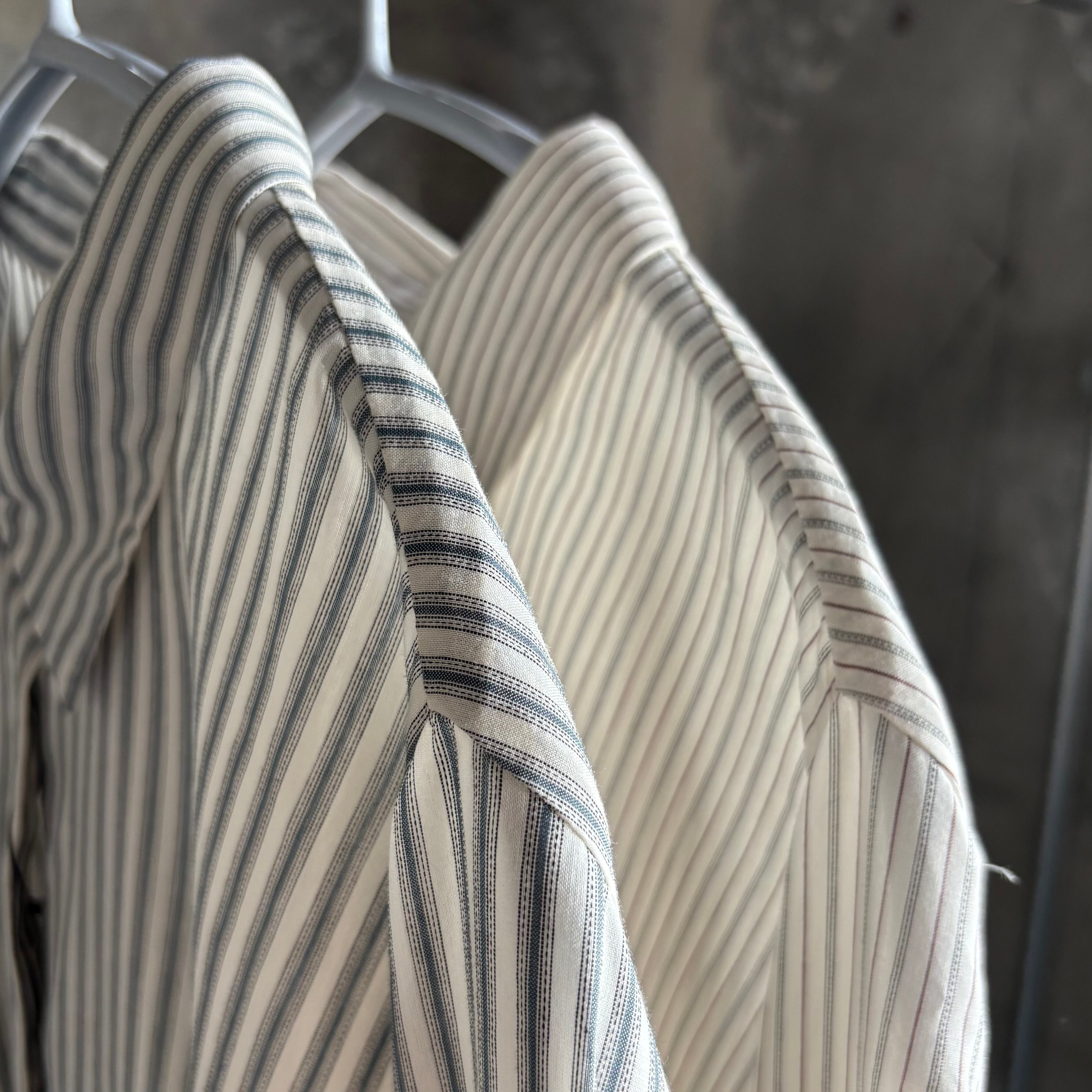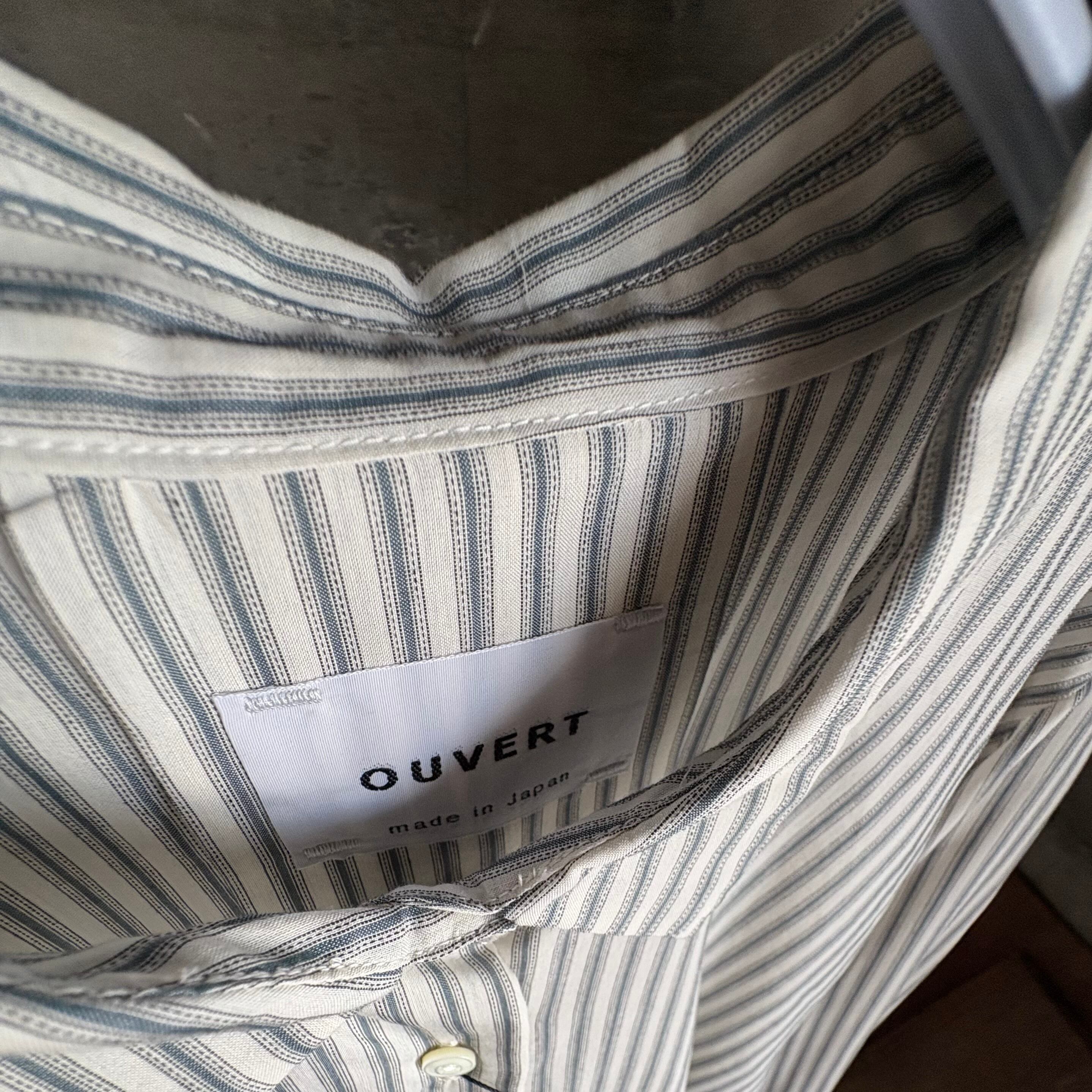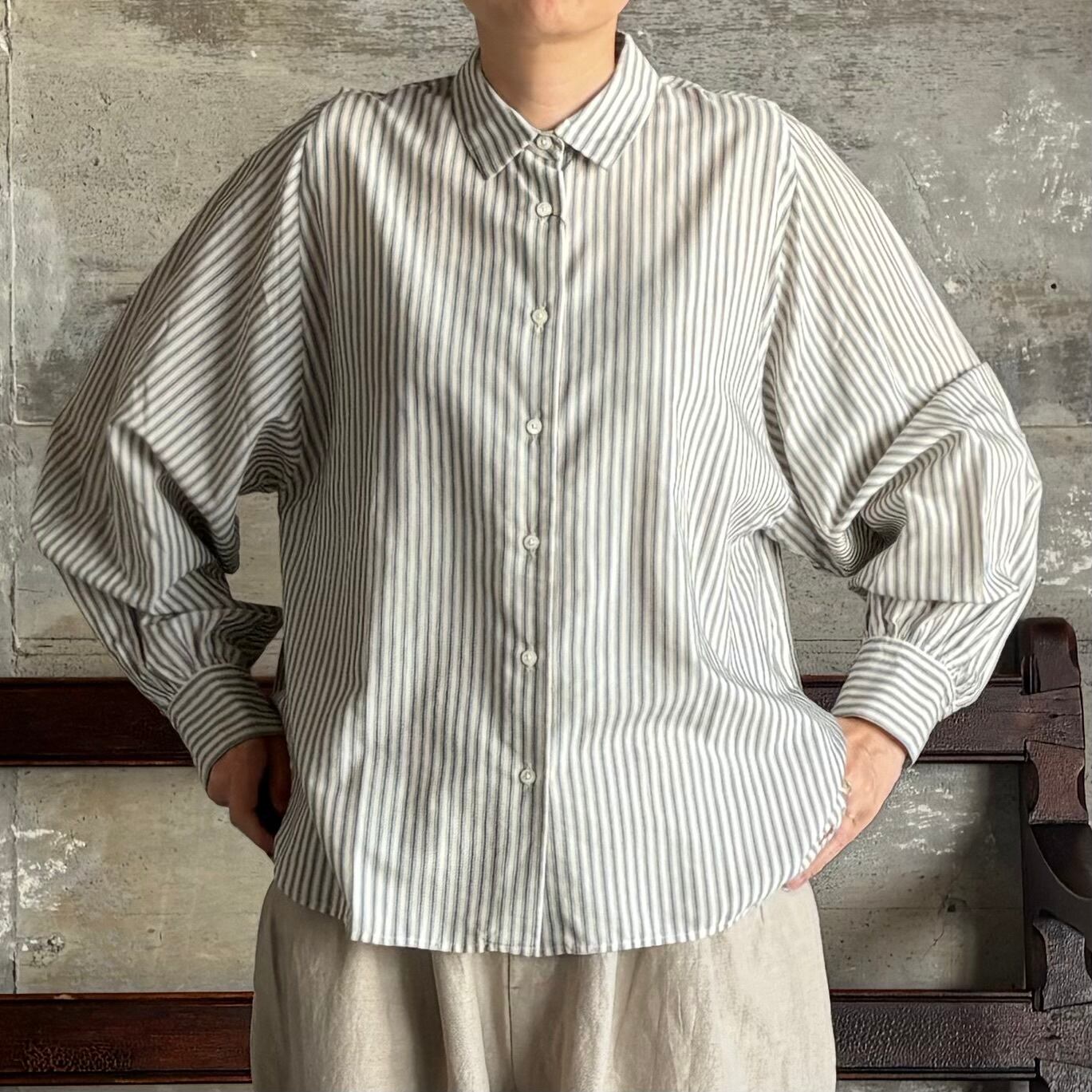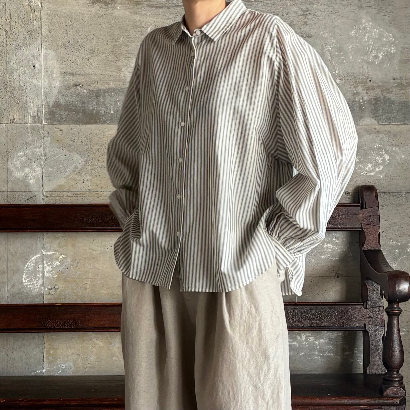 OUVERT ウーヴェル / 強撚キュプラボーダーワッシャー レギュラーラグランシャツ 2540614 キナリ/グレー