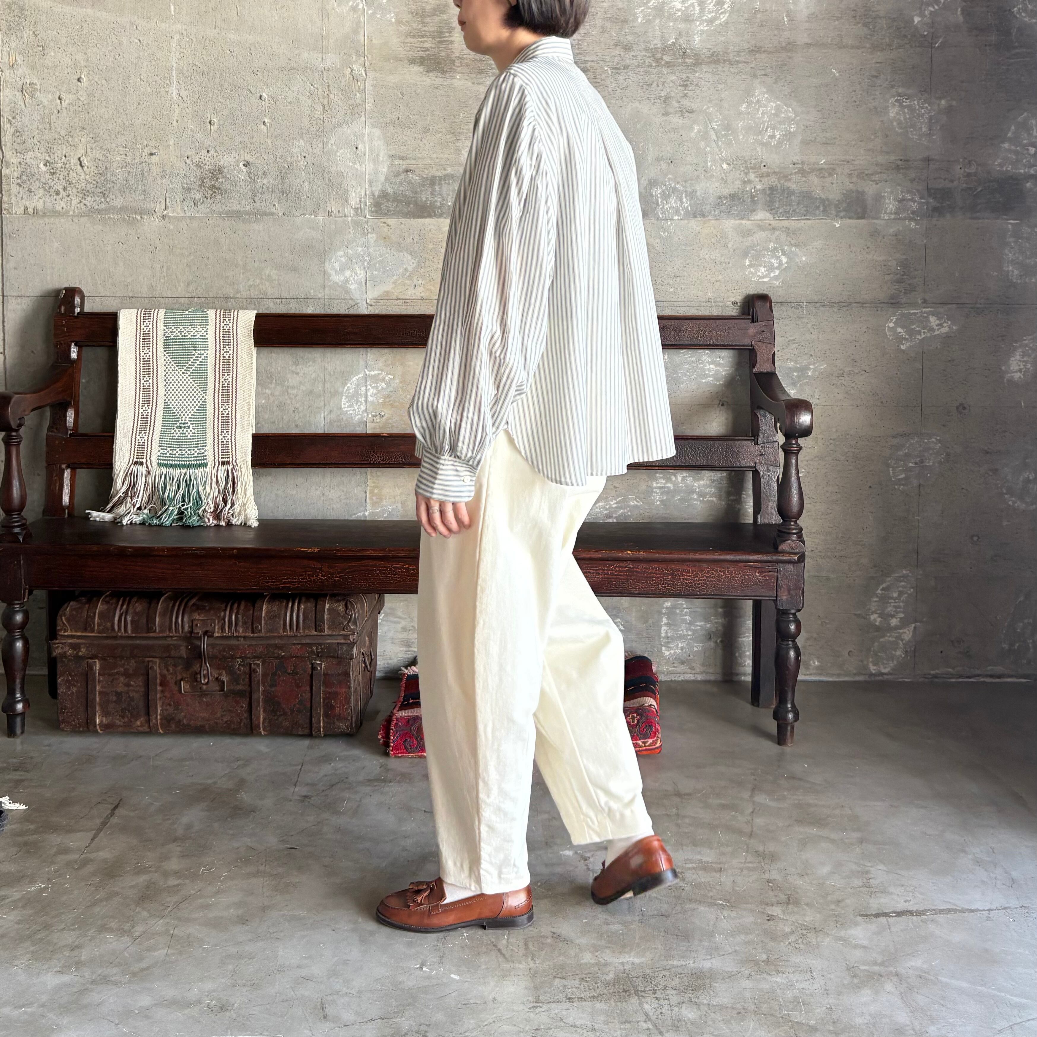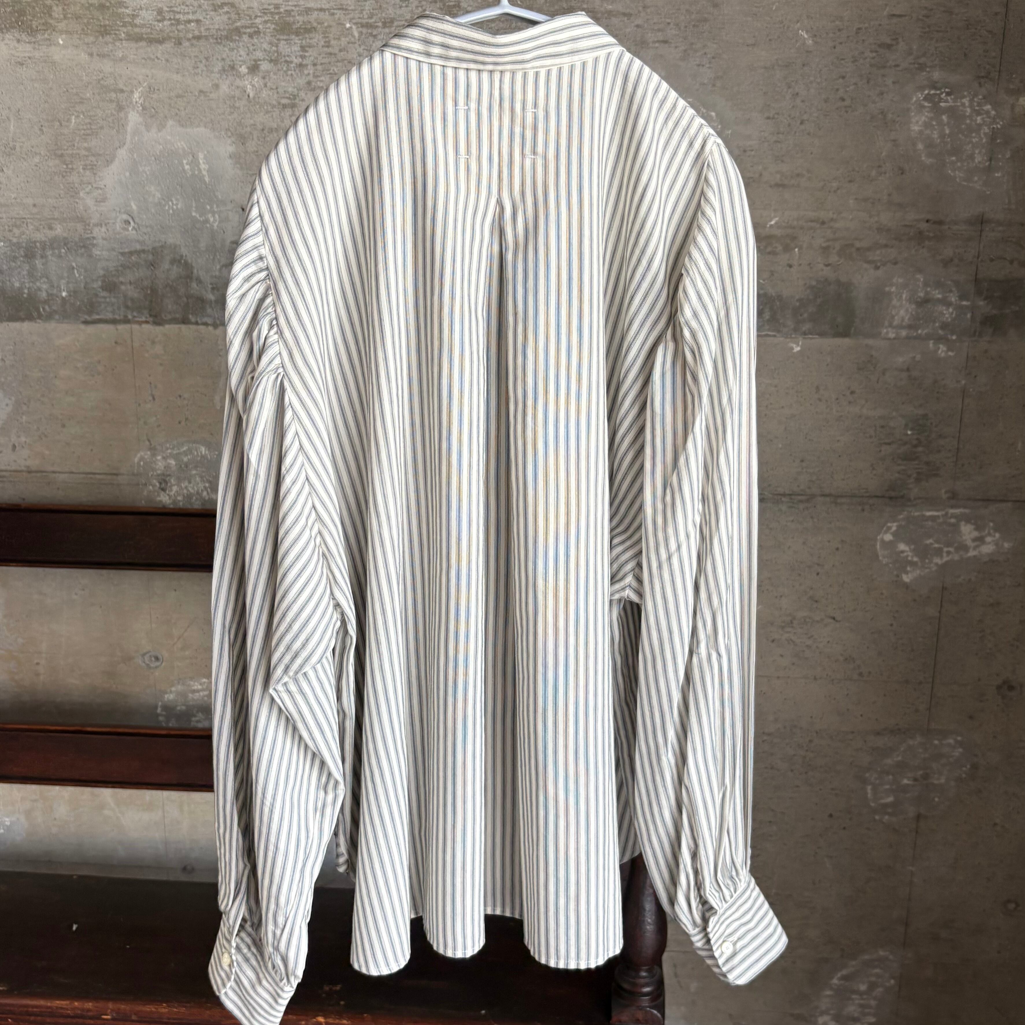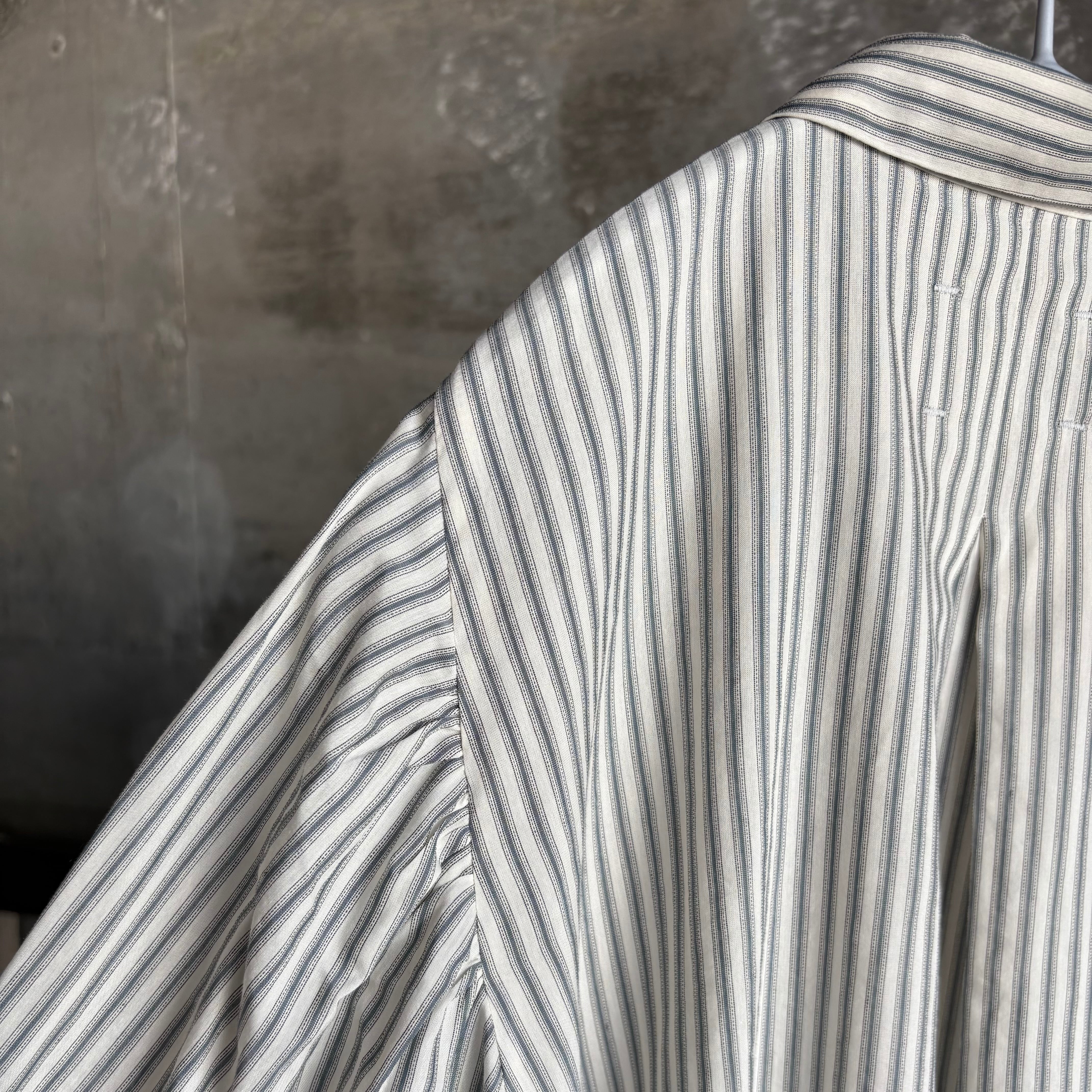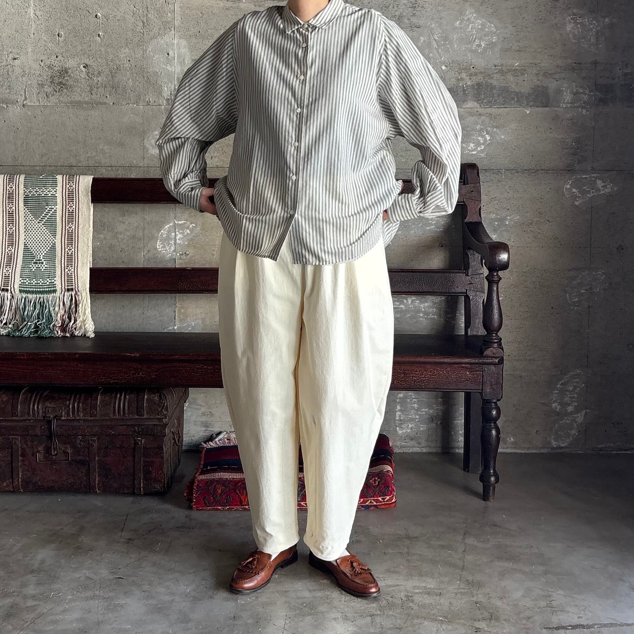 OUVERT ウーヴェル / 強撚キュプラボーダーワッシャー レギュラーラグランシャツ 2540614 キナリ/グレー