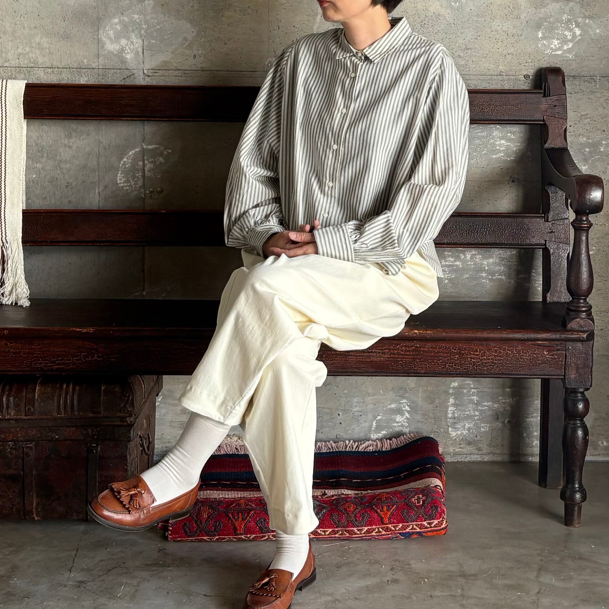 淡いオフホワイト、色を選ばずさりげなくコーディネートがまとまります。