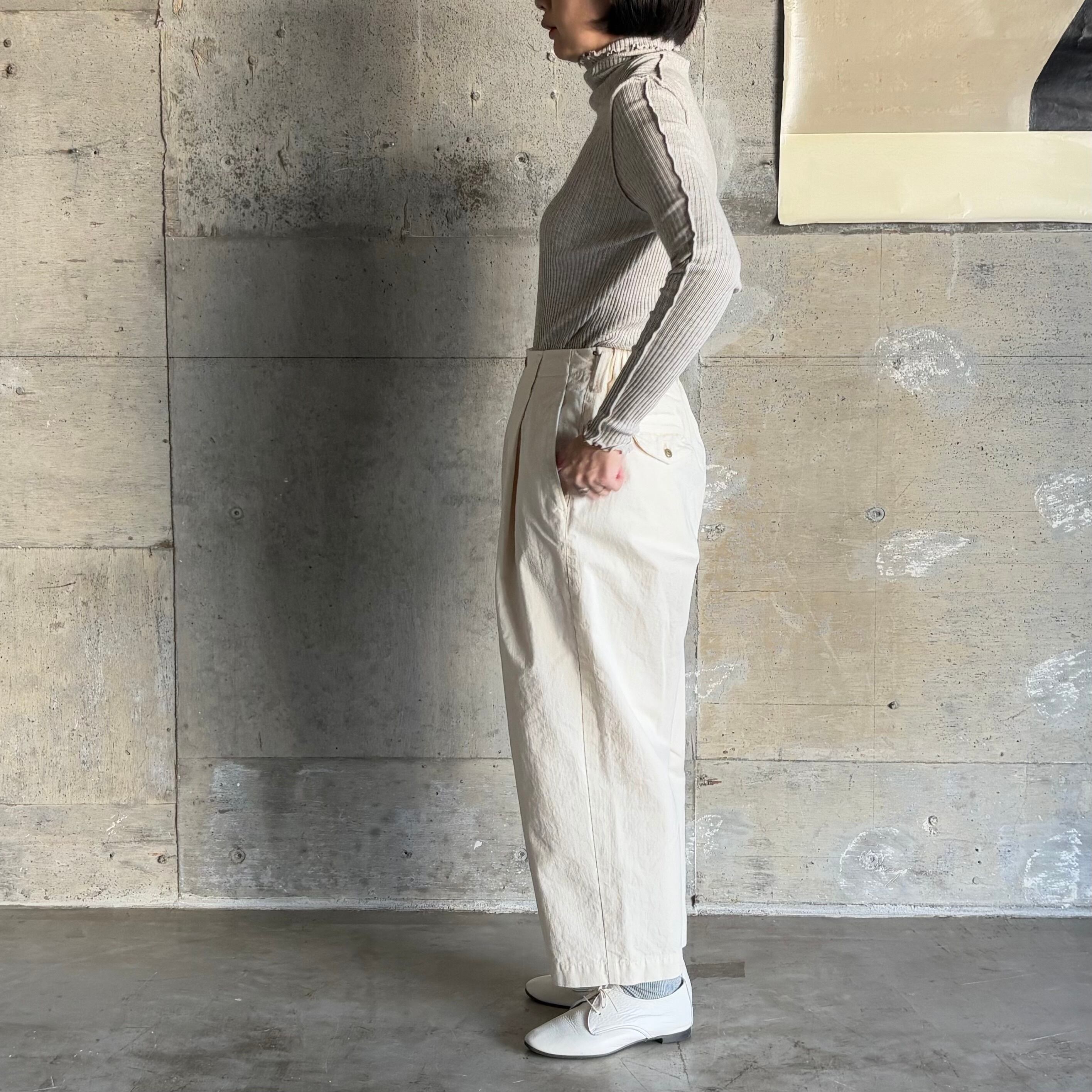 OUVERT ウーヴェル / kayanucotton vintagecloth テーパードチノパンツ オフ染アイボリー・カーキベージュ 2540316