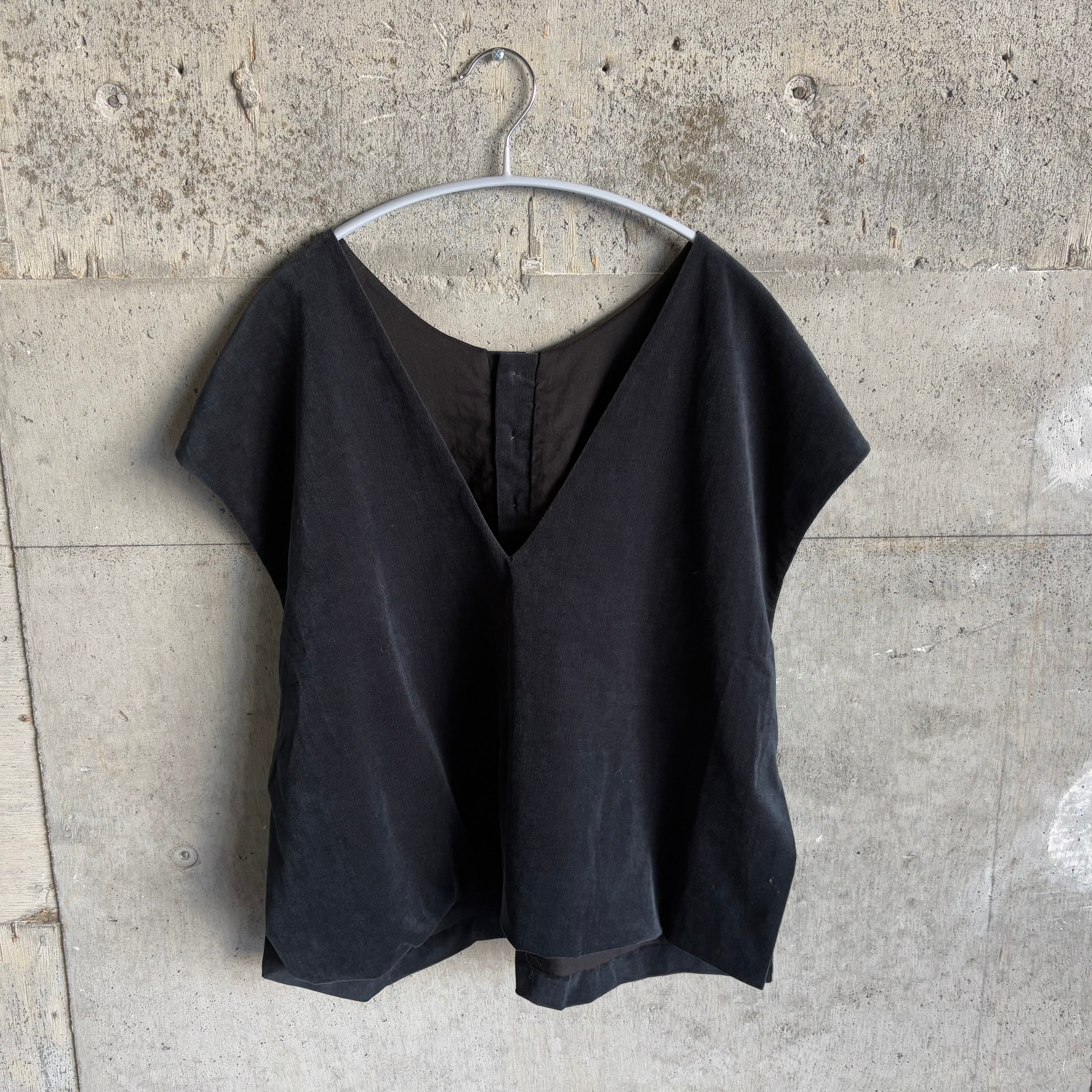 OUVERT ウーヴェル / アメリカン別珍2wayベスト ブラック・オフホワイト