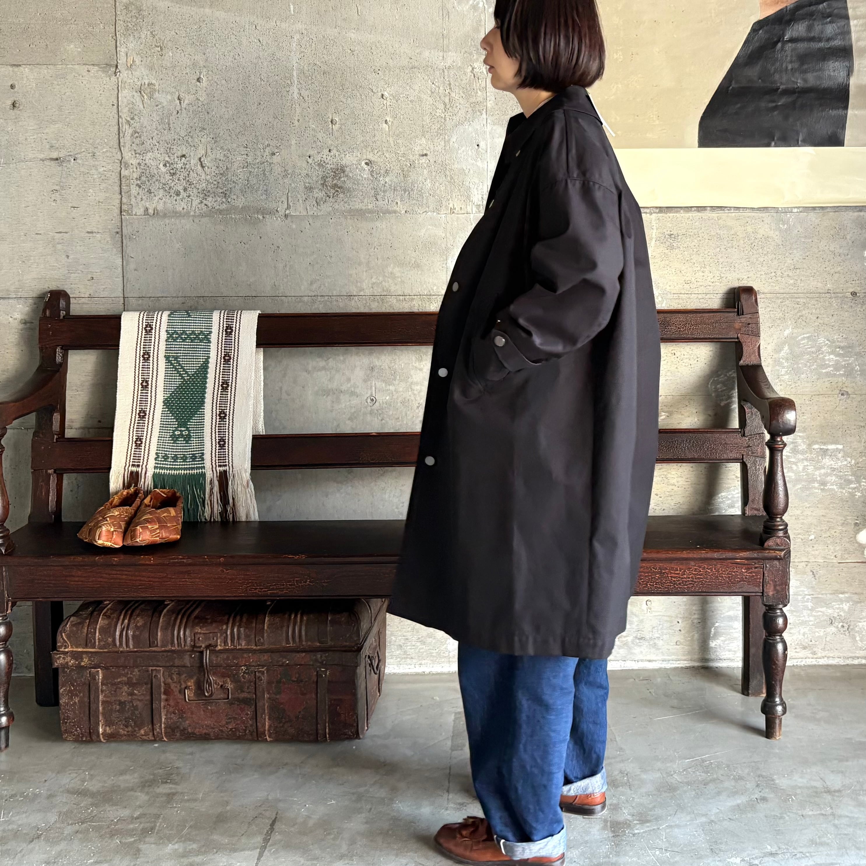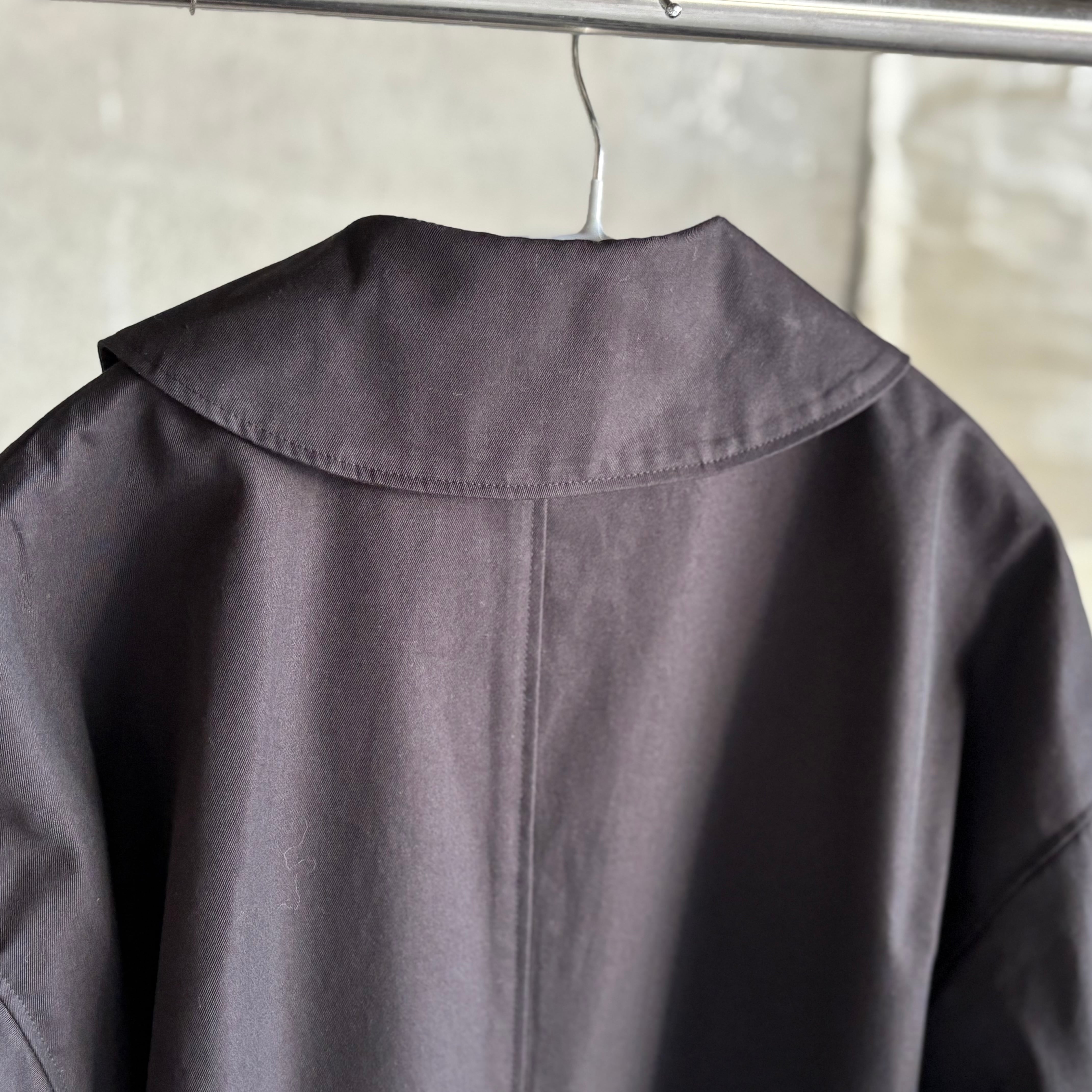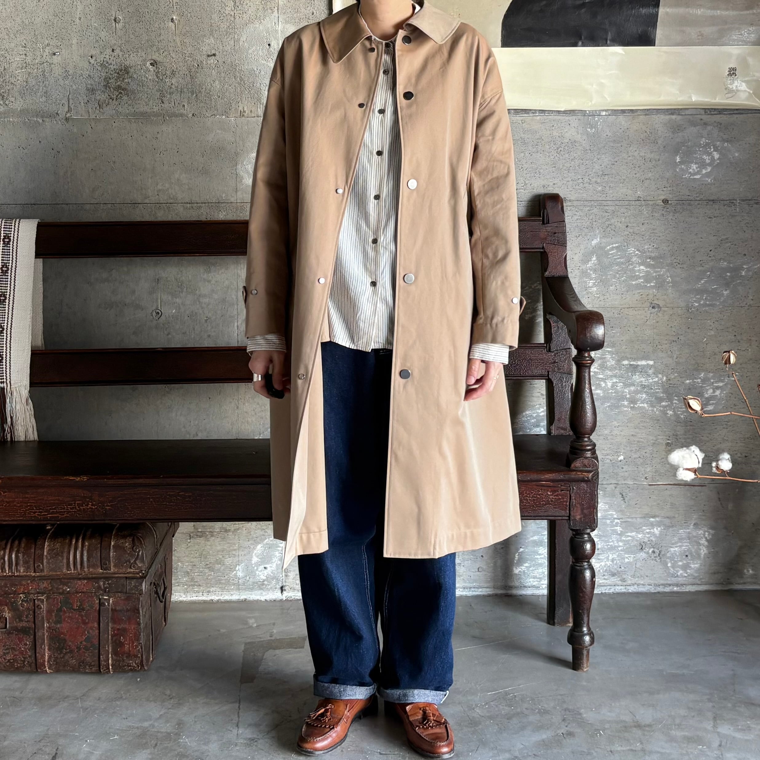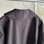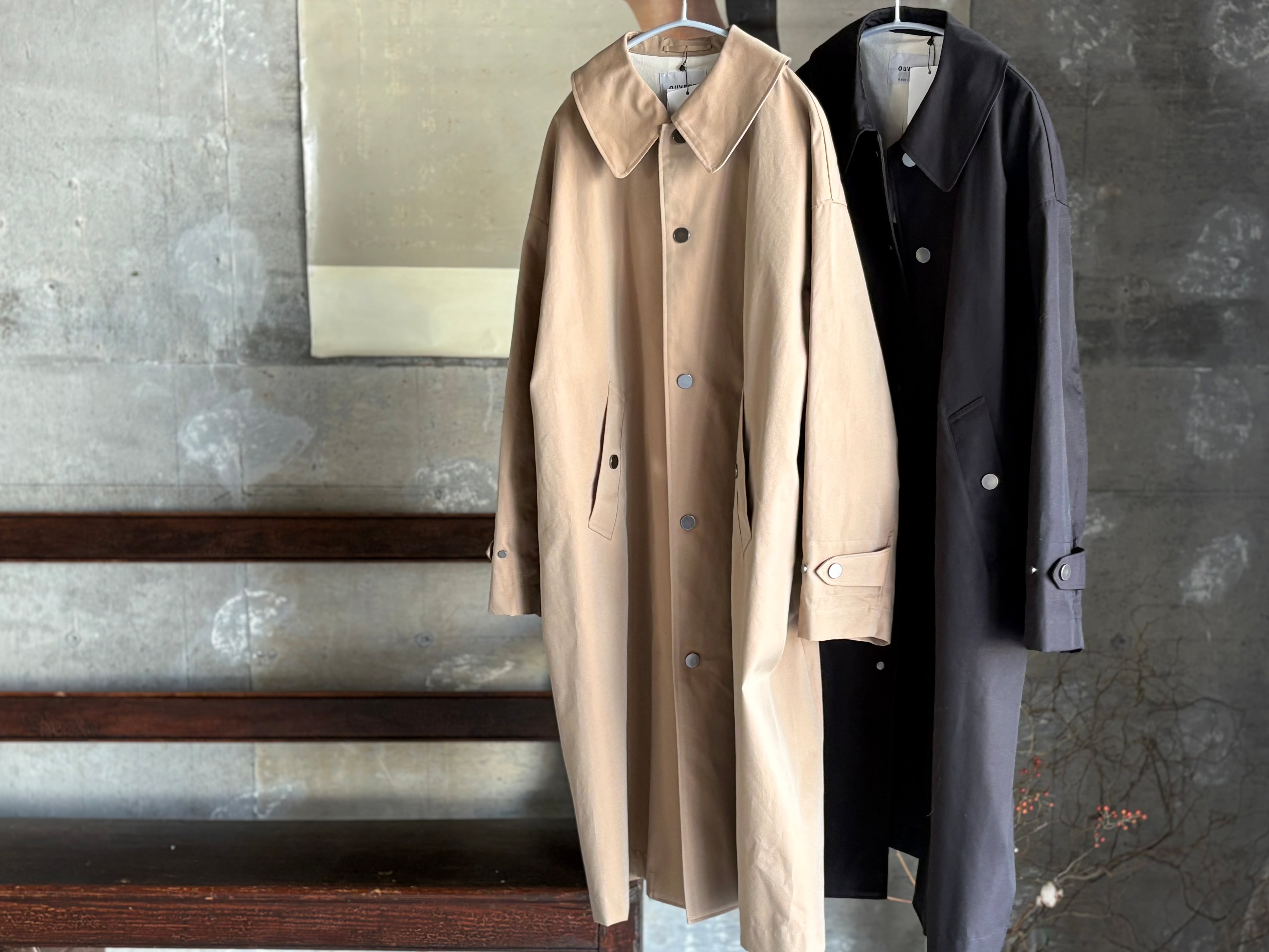 高密度で織った先染めの生地が使用されています。撥水加工が施されており、ハリ感があり、綺麗めコーディネートに仕上がります。落ち着いたフラットシルバー釦で生地の雰囲気を静かに整えてくれます。ブラックはあらたまった場でも映え、頼りになる1枚です。