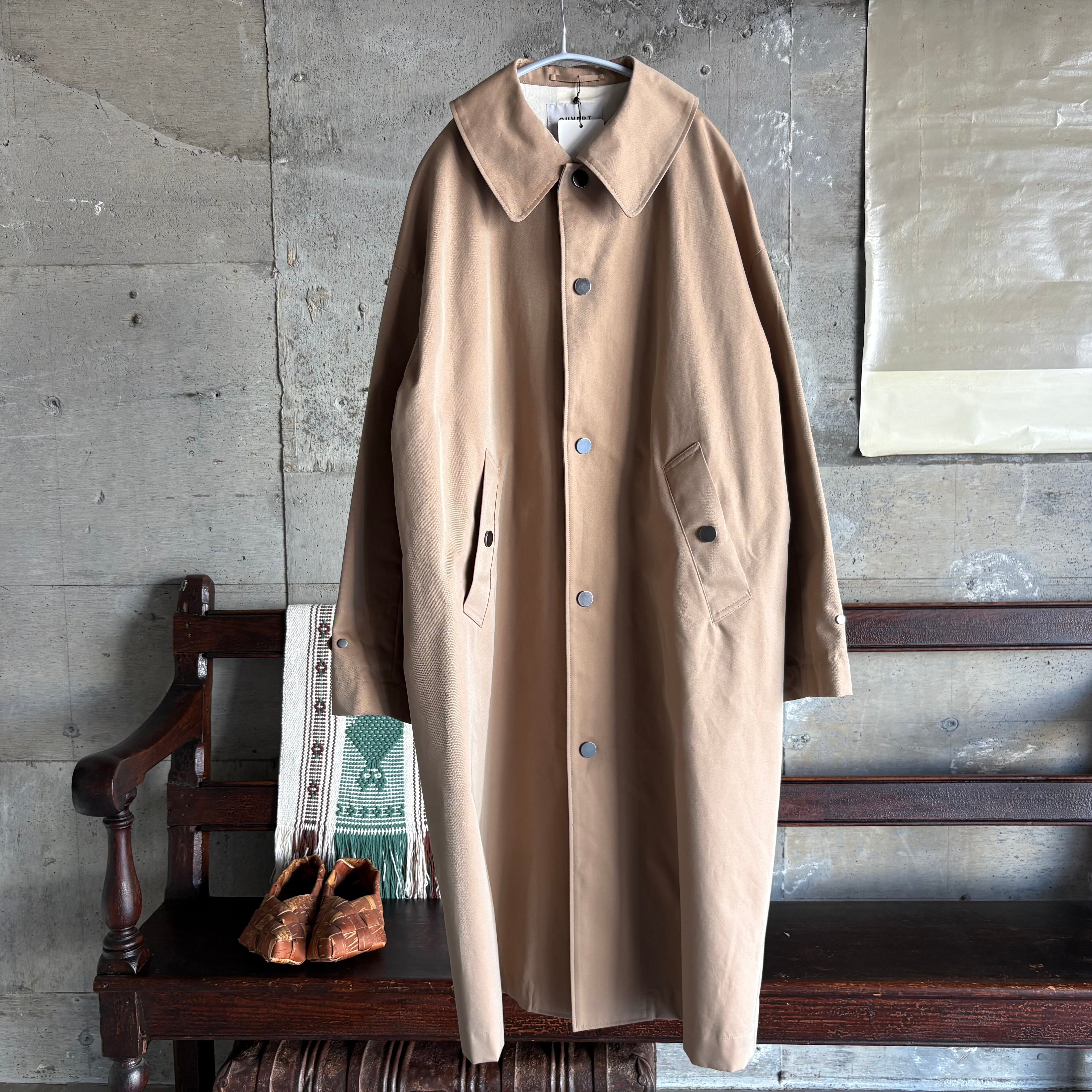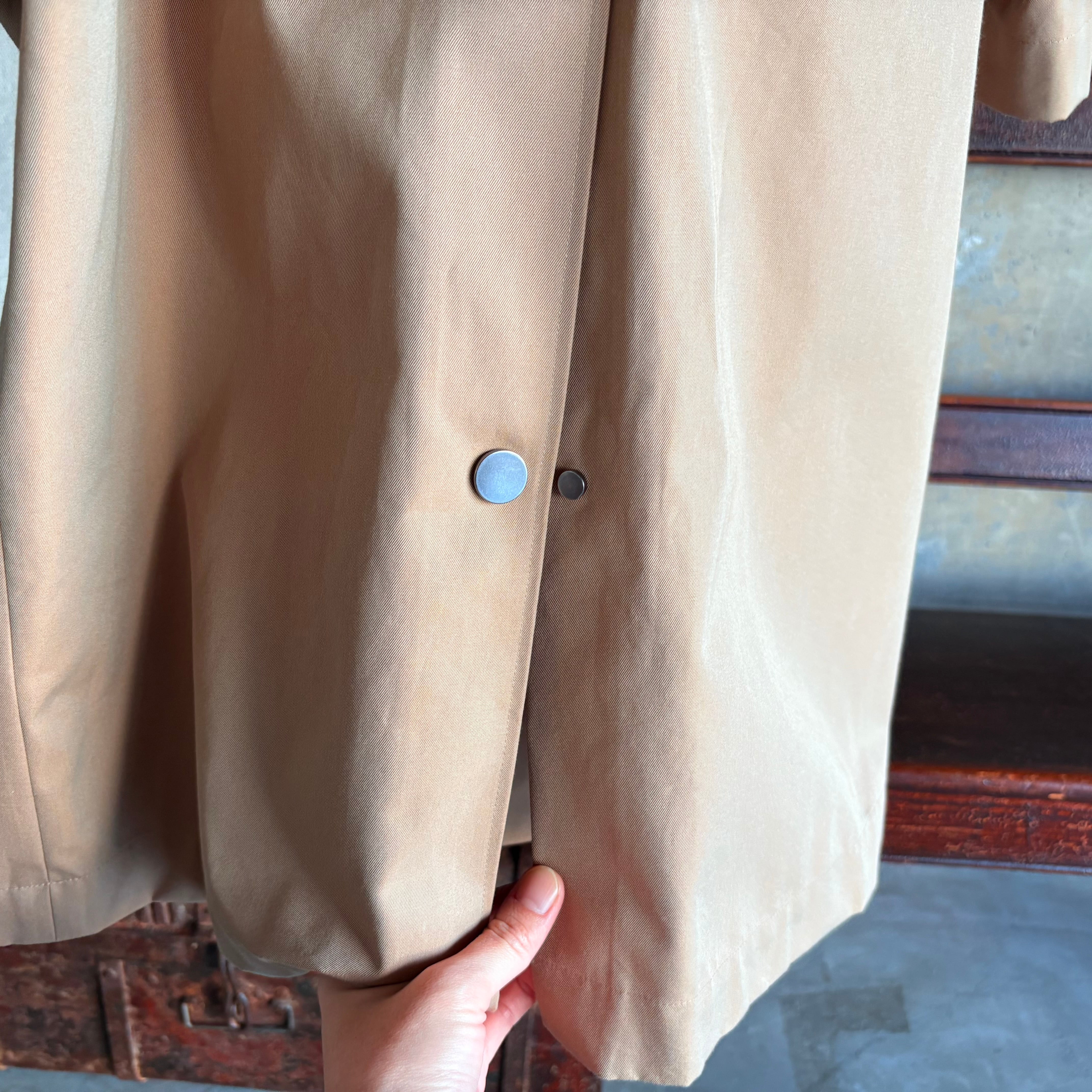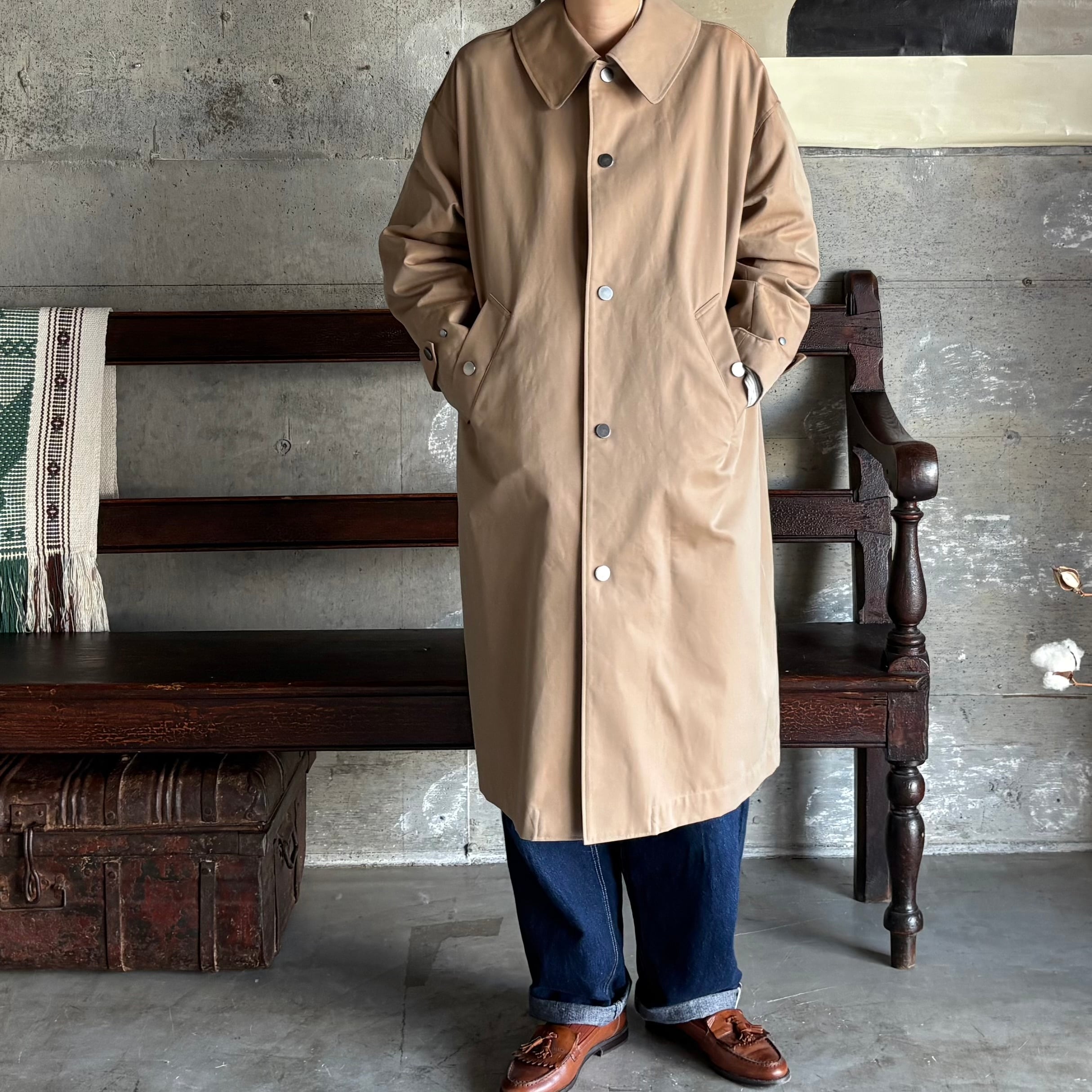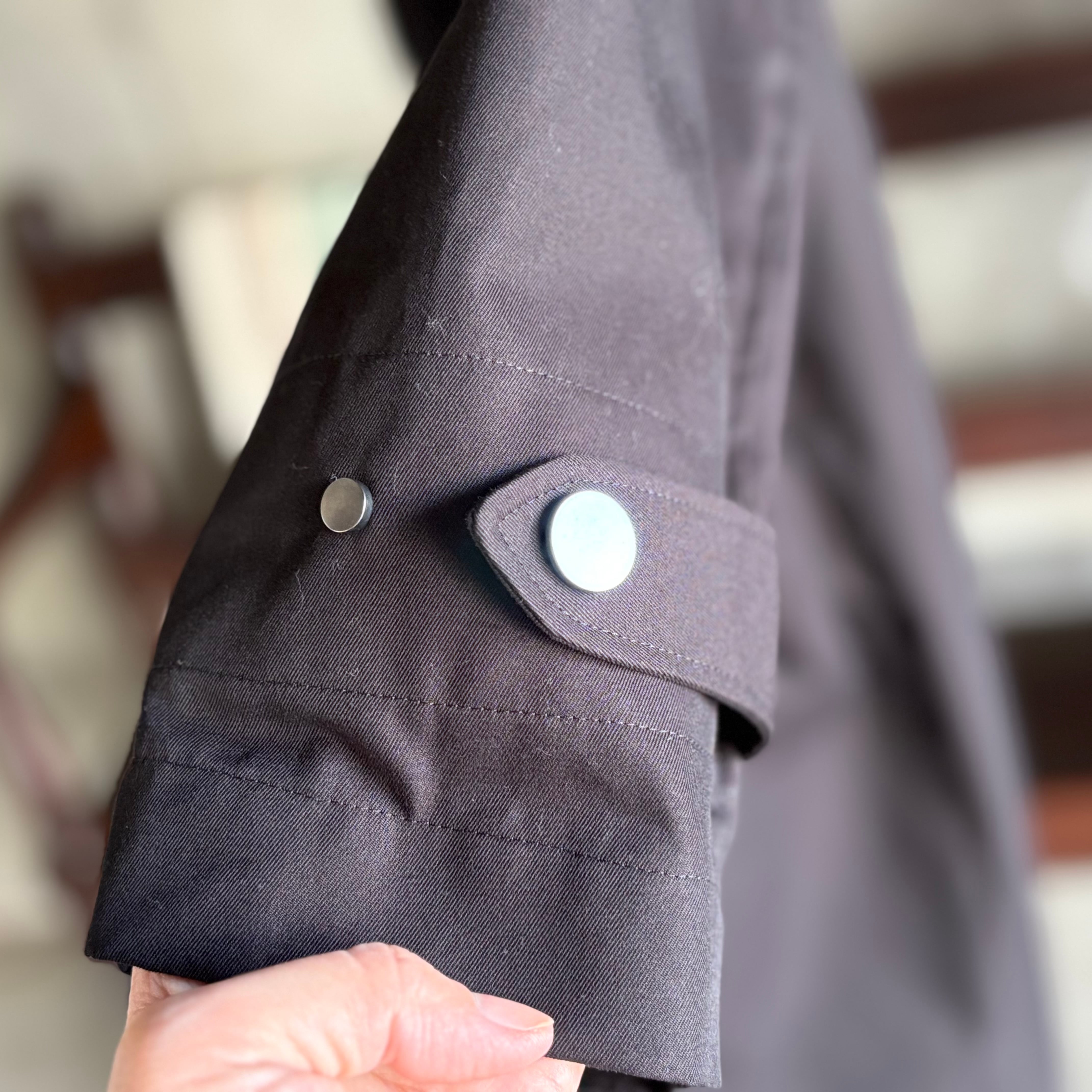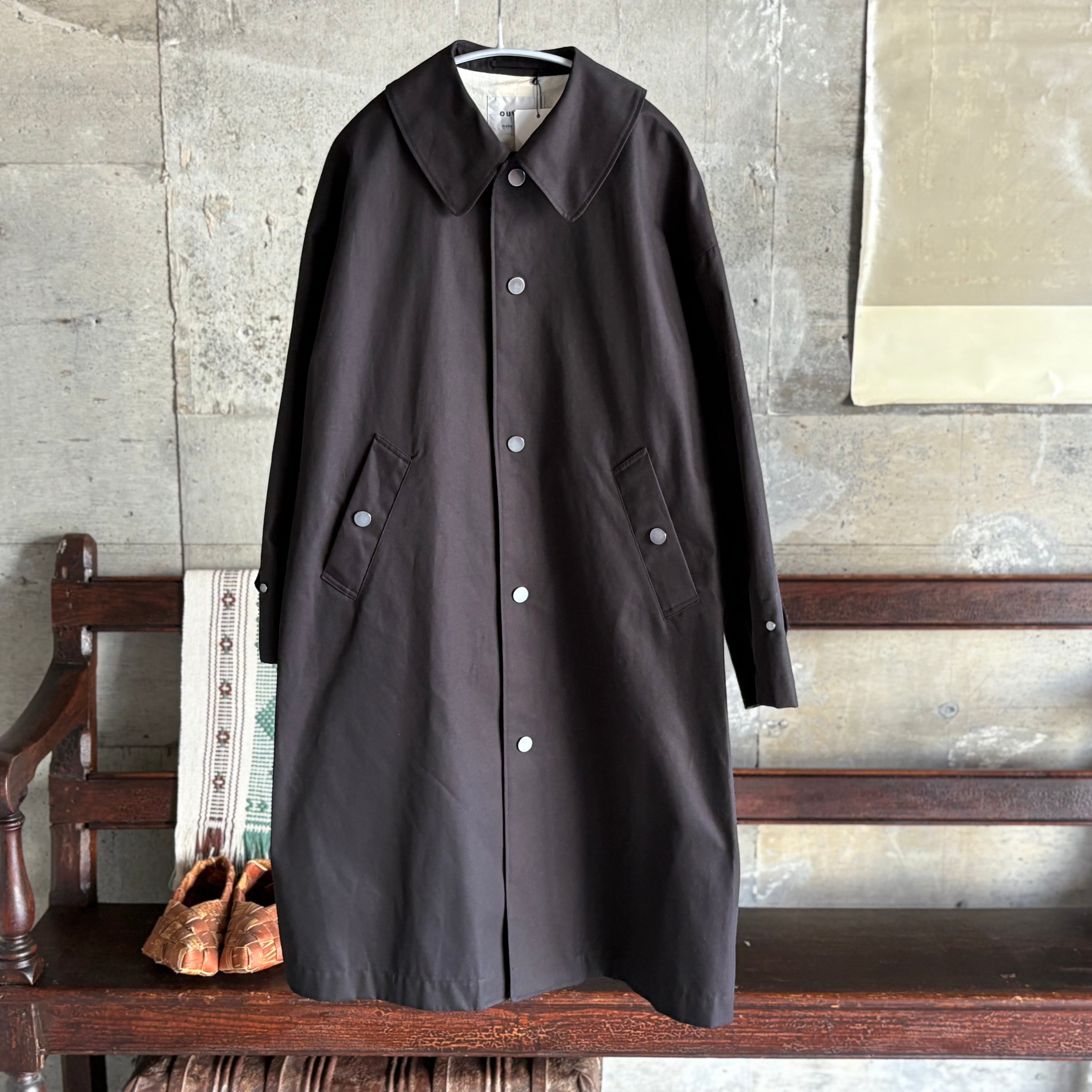 高密度で織った先染めの生地が使用されています。撥水加工が施されており、ハリ感があり、綺麗めコーディネートに仕上がります。落ち着いたフラットシルバー釦で生地の雰囲気を静かに整えてくれます。ブラックはあらたまった場でも映え、頼りになる1枚です。
