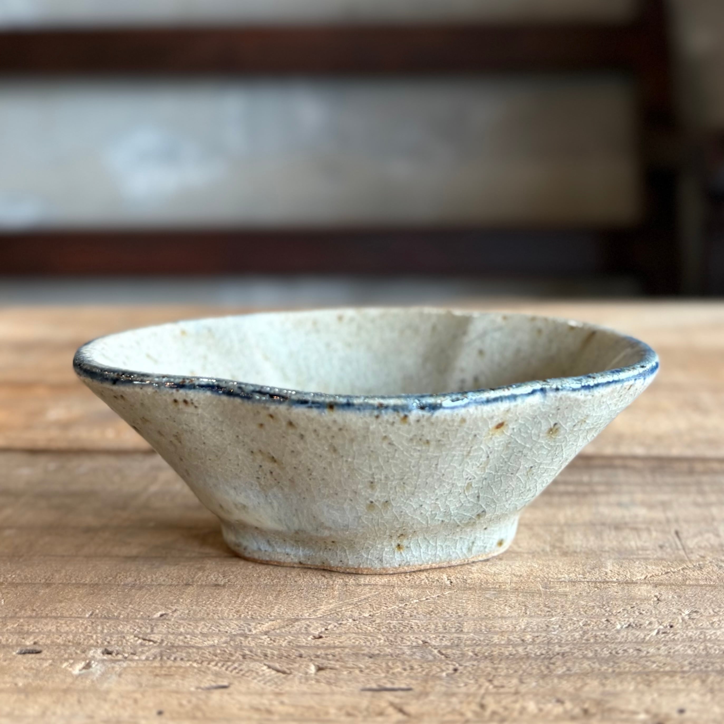 寺村光輔 / 木瓜形小鉢 並白釉 呉須 薪 益子焼 陶器 陶芸家