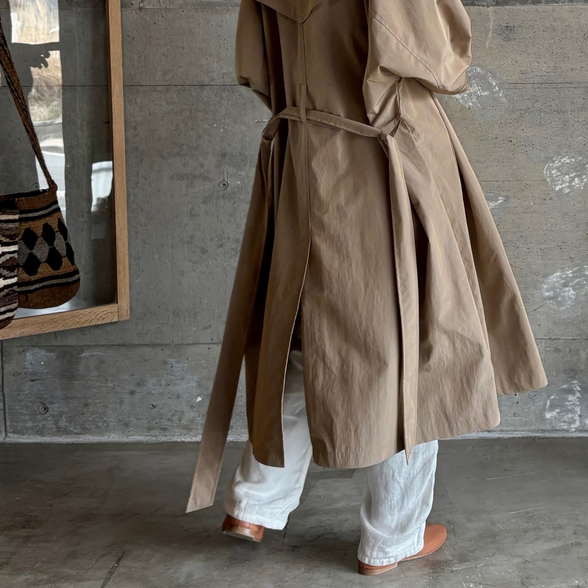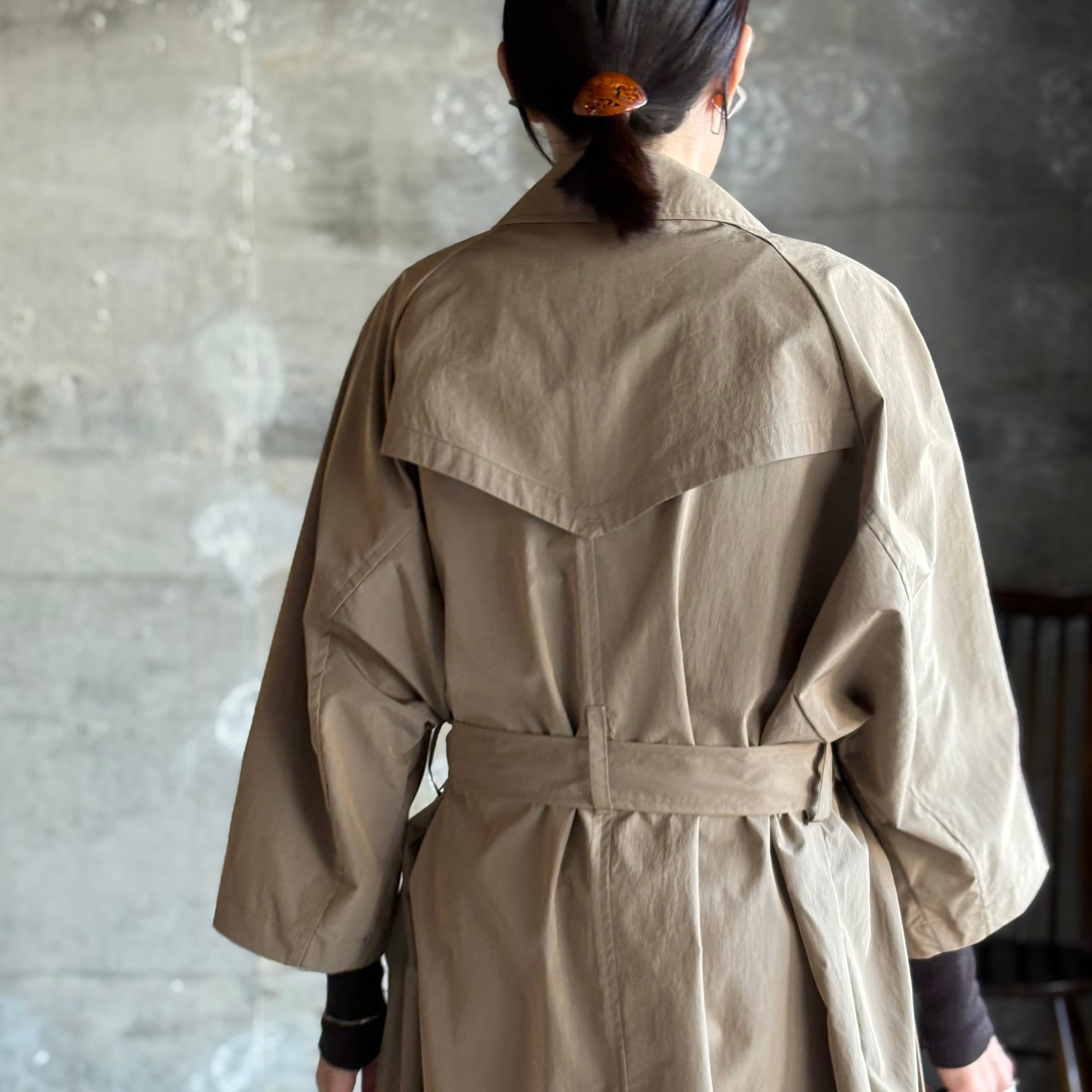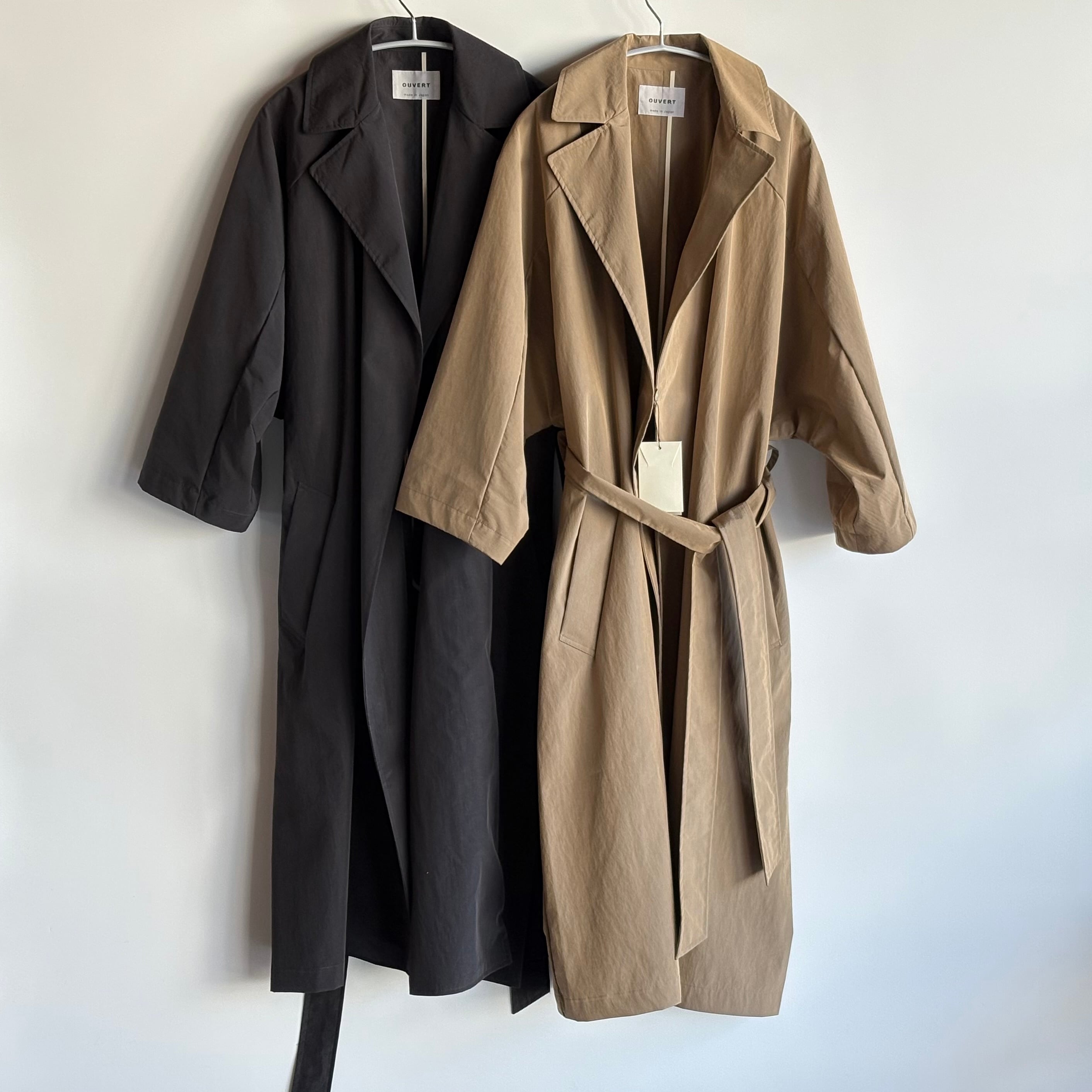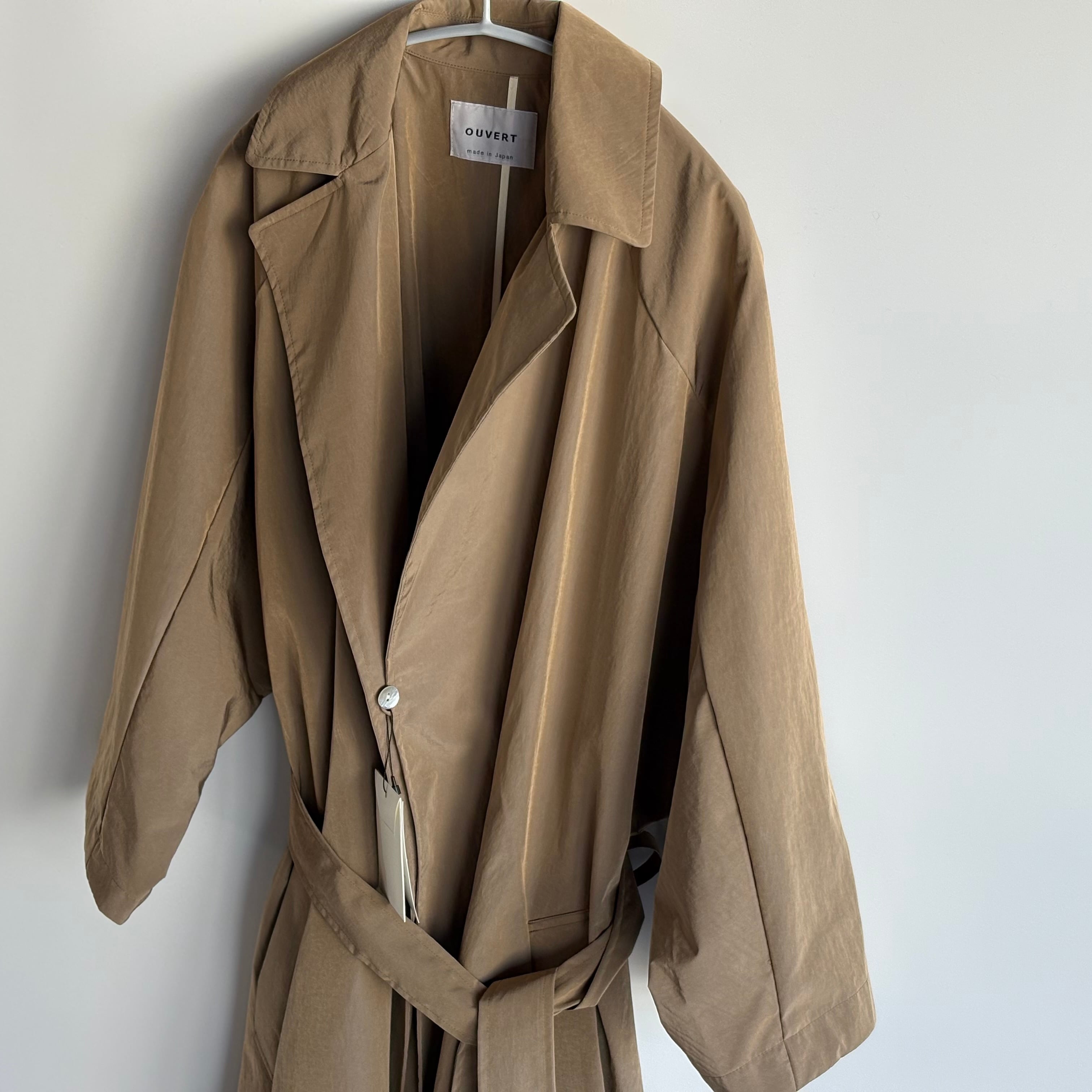 OUVERT ウーヴェル / Pe/N 割織タフタヴィンテージタンブラー撥水加工ベルト付きコート カーキ・ブラック