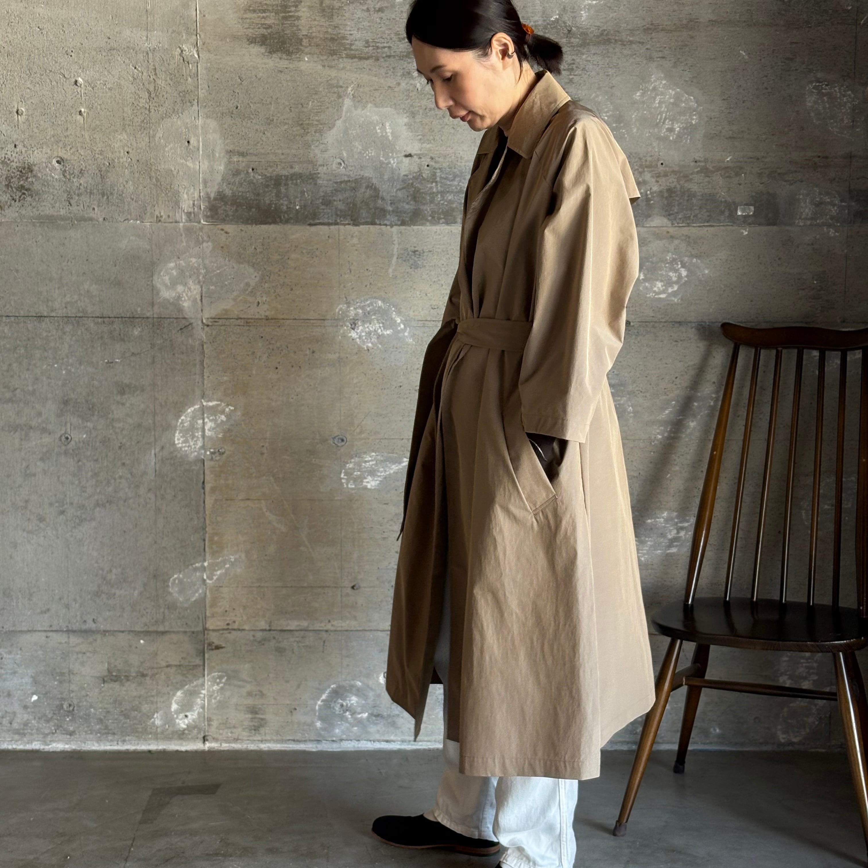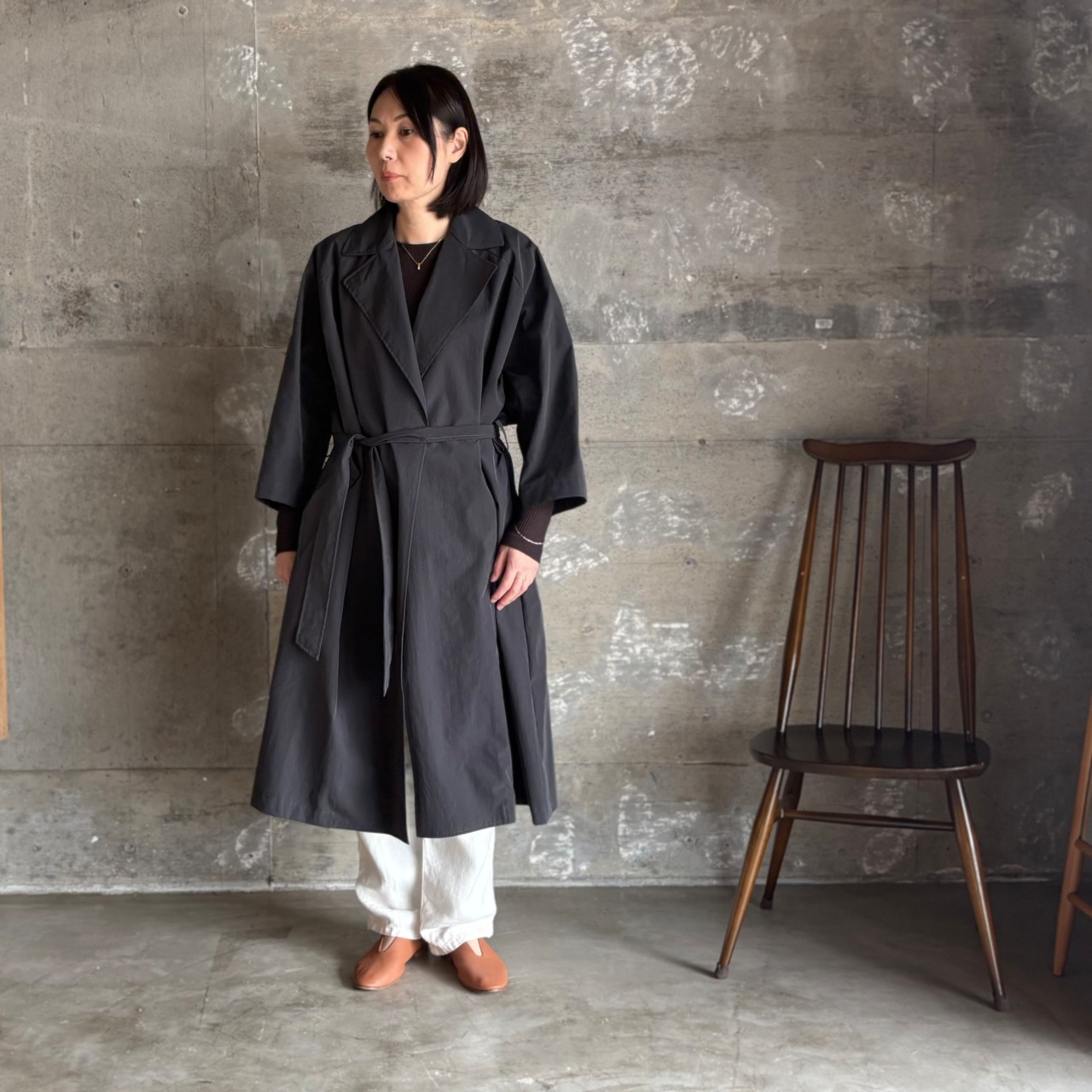 生地の雰囲気と洗練されたシルエット、年齢問わず幅広い方に合うコートです。小柄な方でも、こなれ感を演出してくれます。