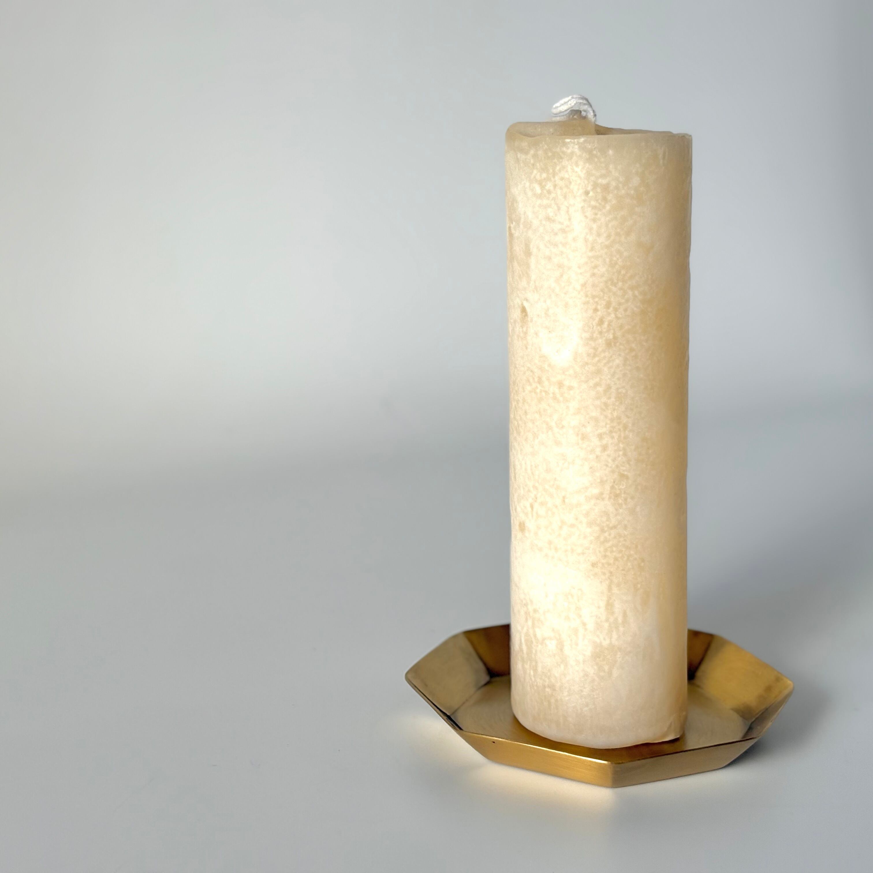 火とともに外側が溶け、内に秘めていた蝋が現れるたび、ひとつの蝋燭の中で表情がゆっくり移ろいます。