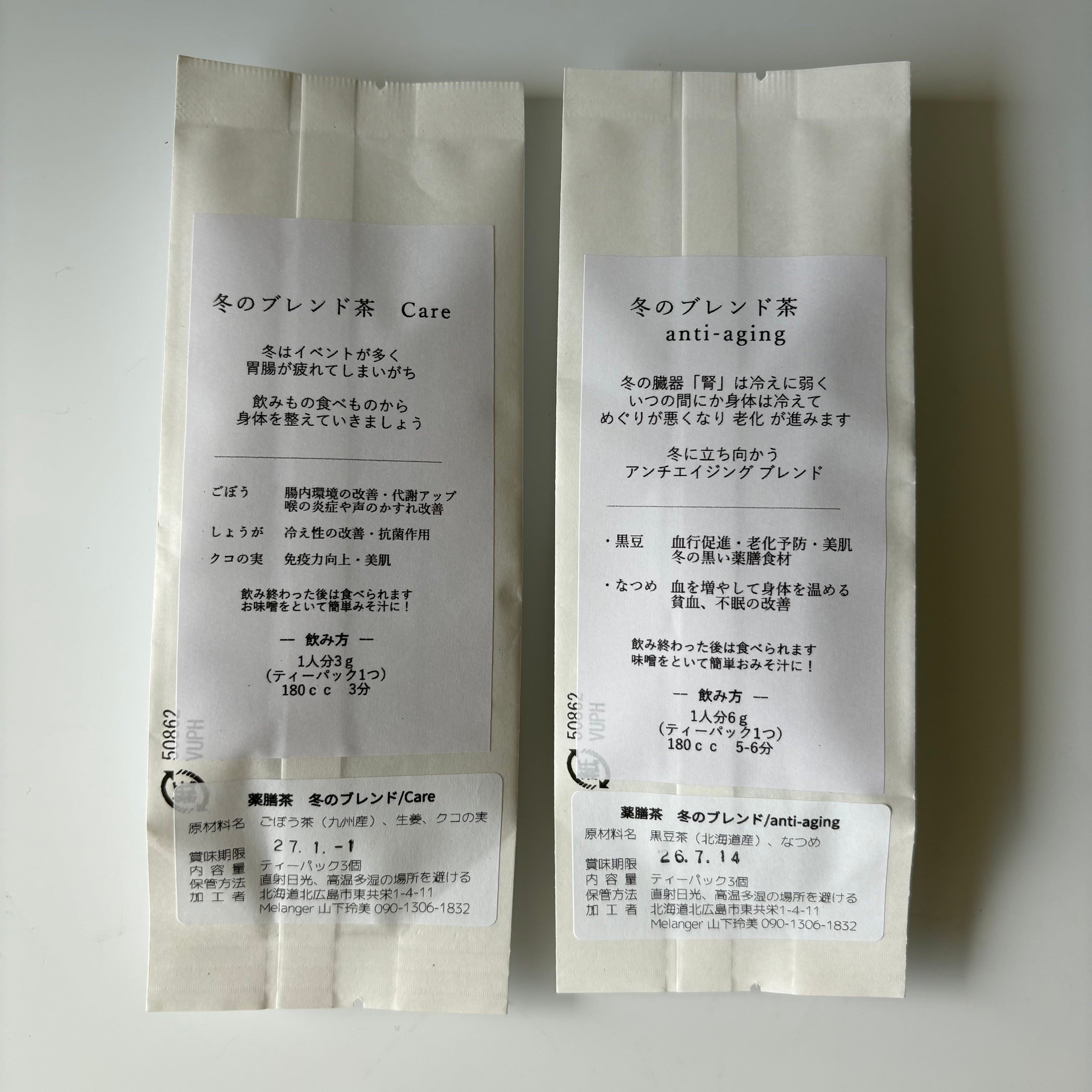 冬ブレンドは Care と anti-aging の2種類。