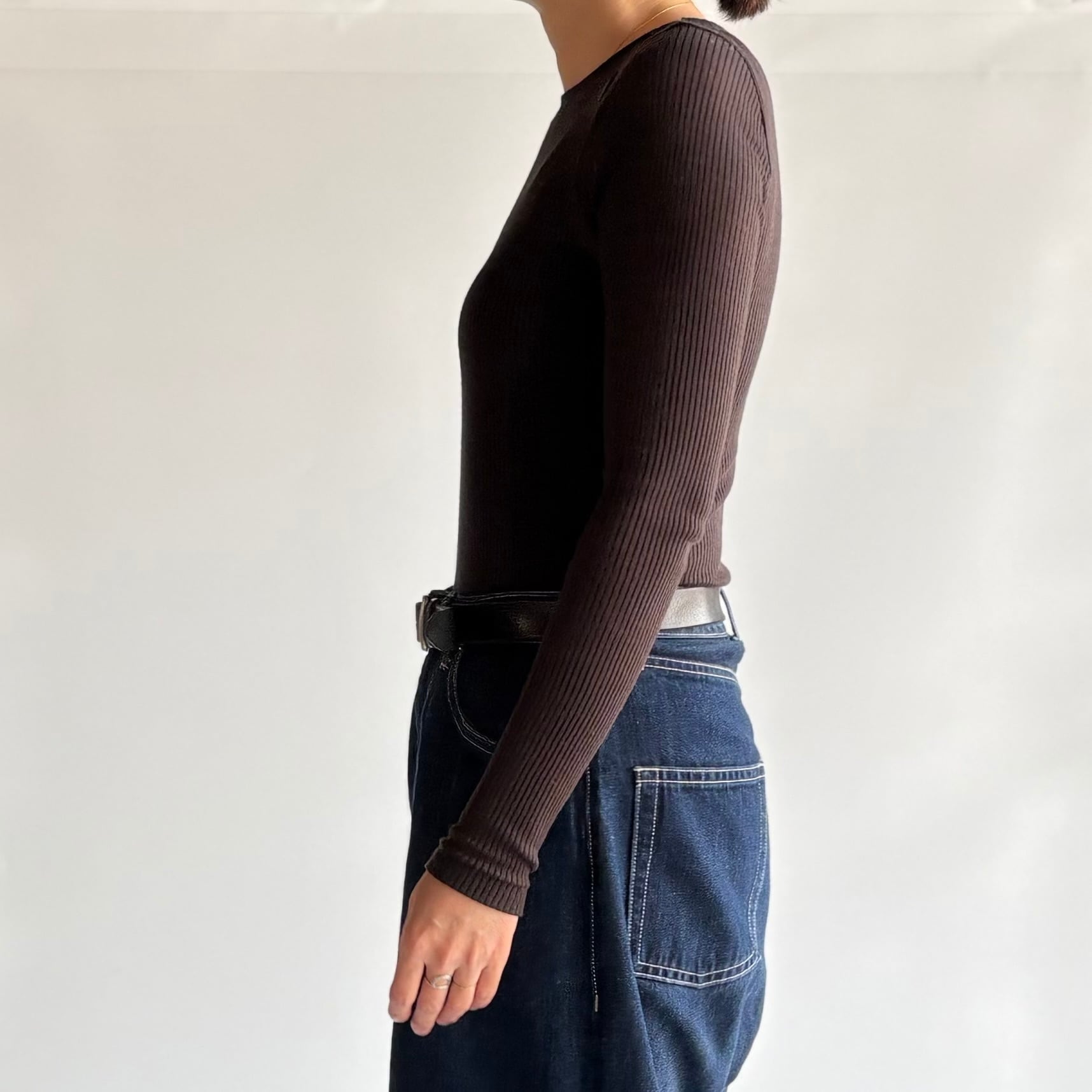 1dorzen / ウールシフォンリブ ロングスリーブ black・charcoal・pink