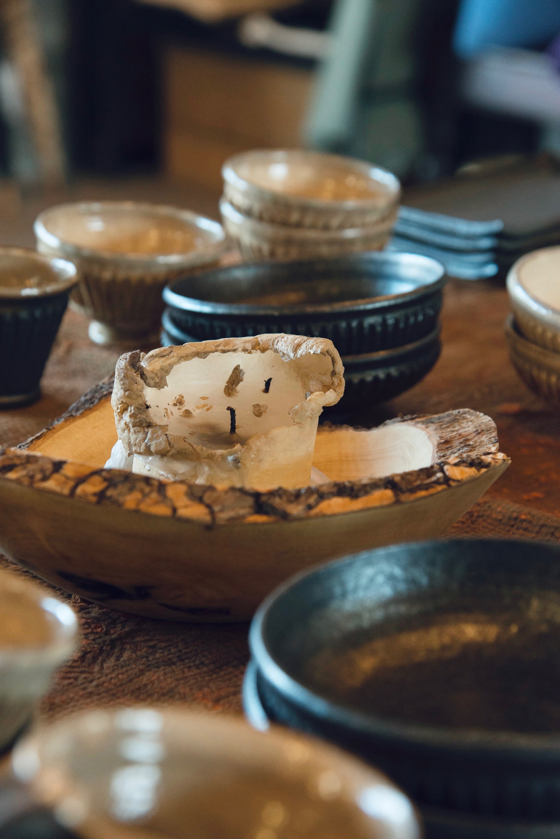 大きな器は趣きたっぷり。黒い節がアクセントになっています。
