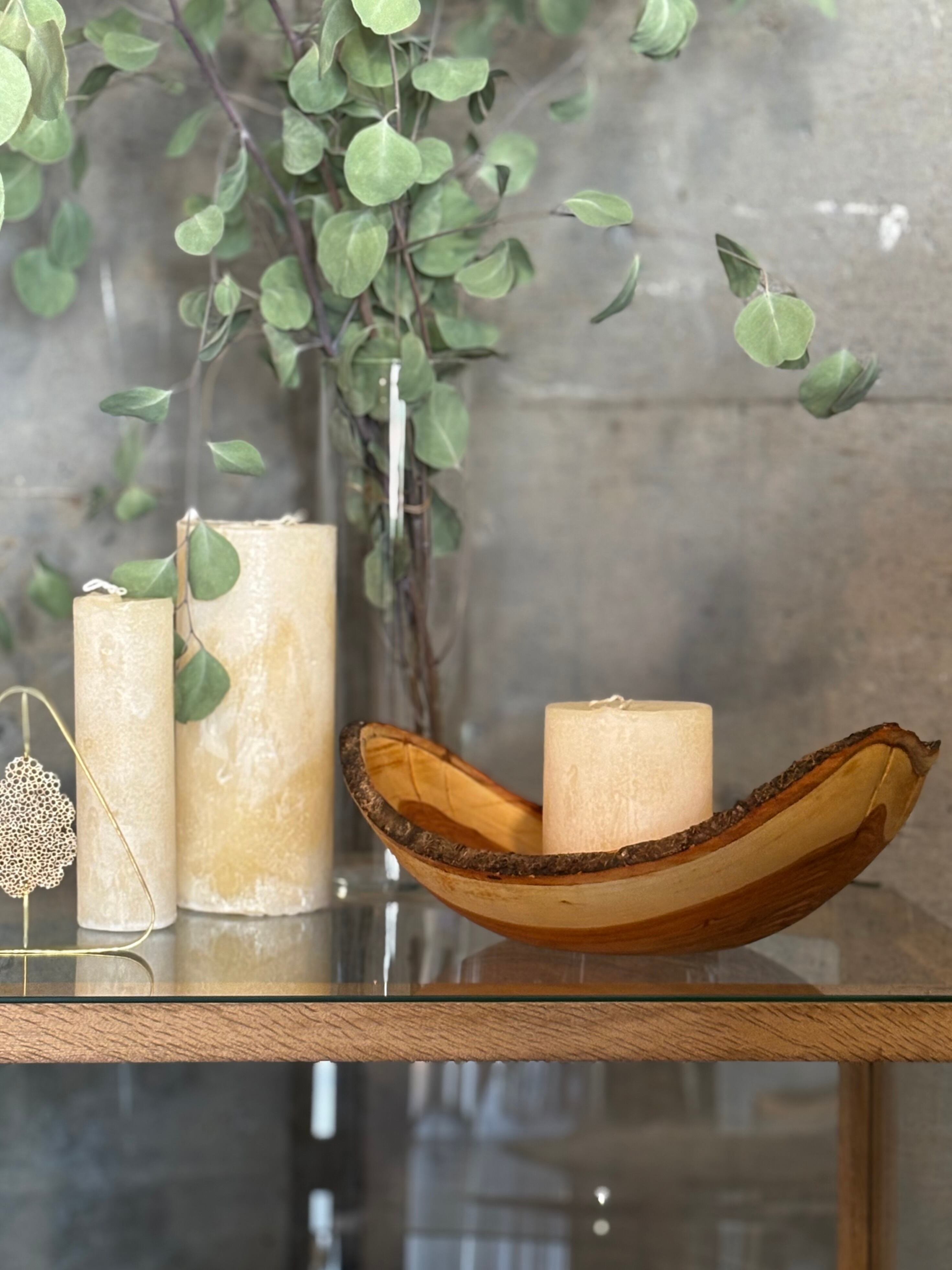 時間とともに表面が乾いてくる場合がありますので、乾燥が気になった際は蜜蝋オイルや木工用オイルでやさしく拭いていただくと、風合いが長持ちします。