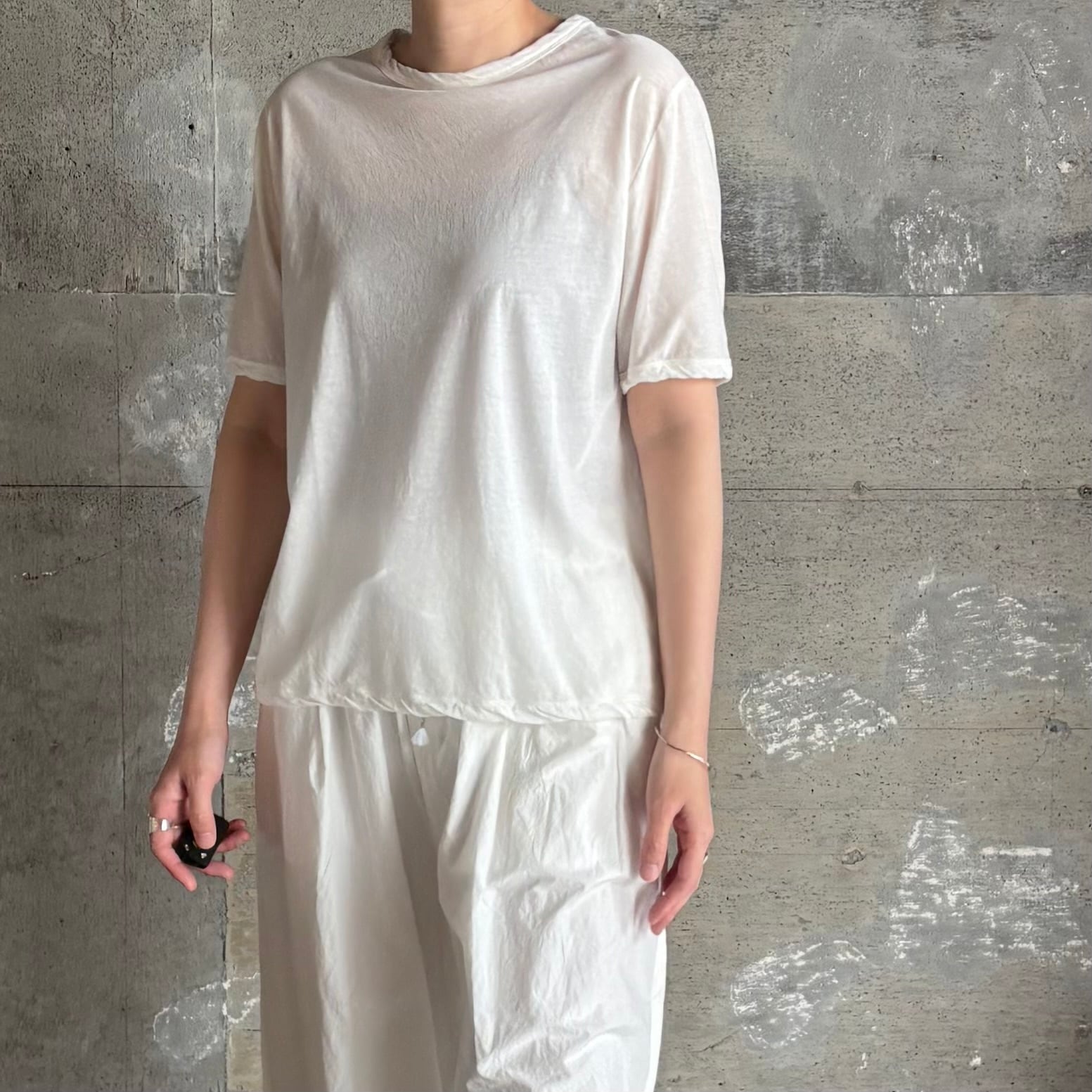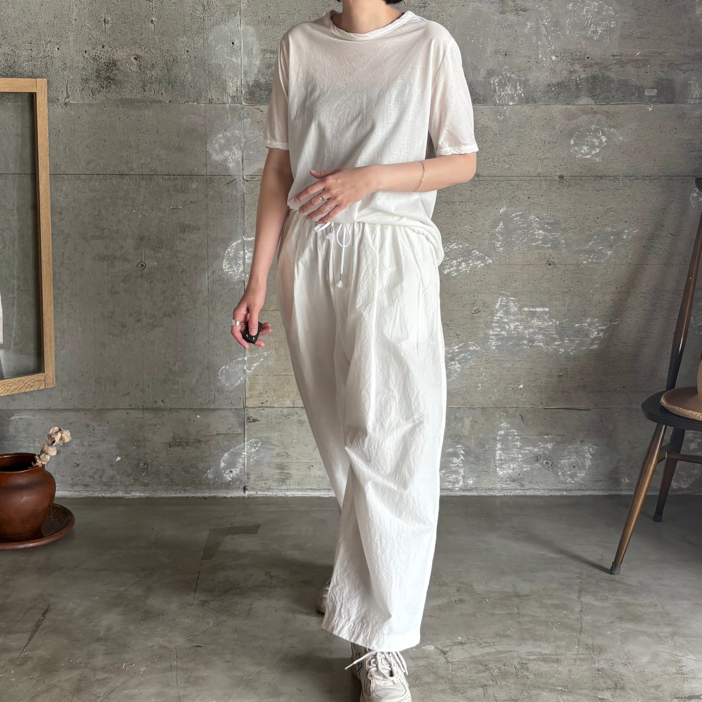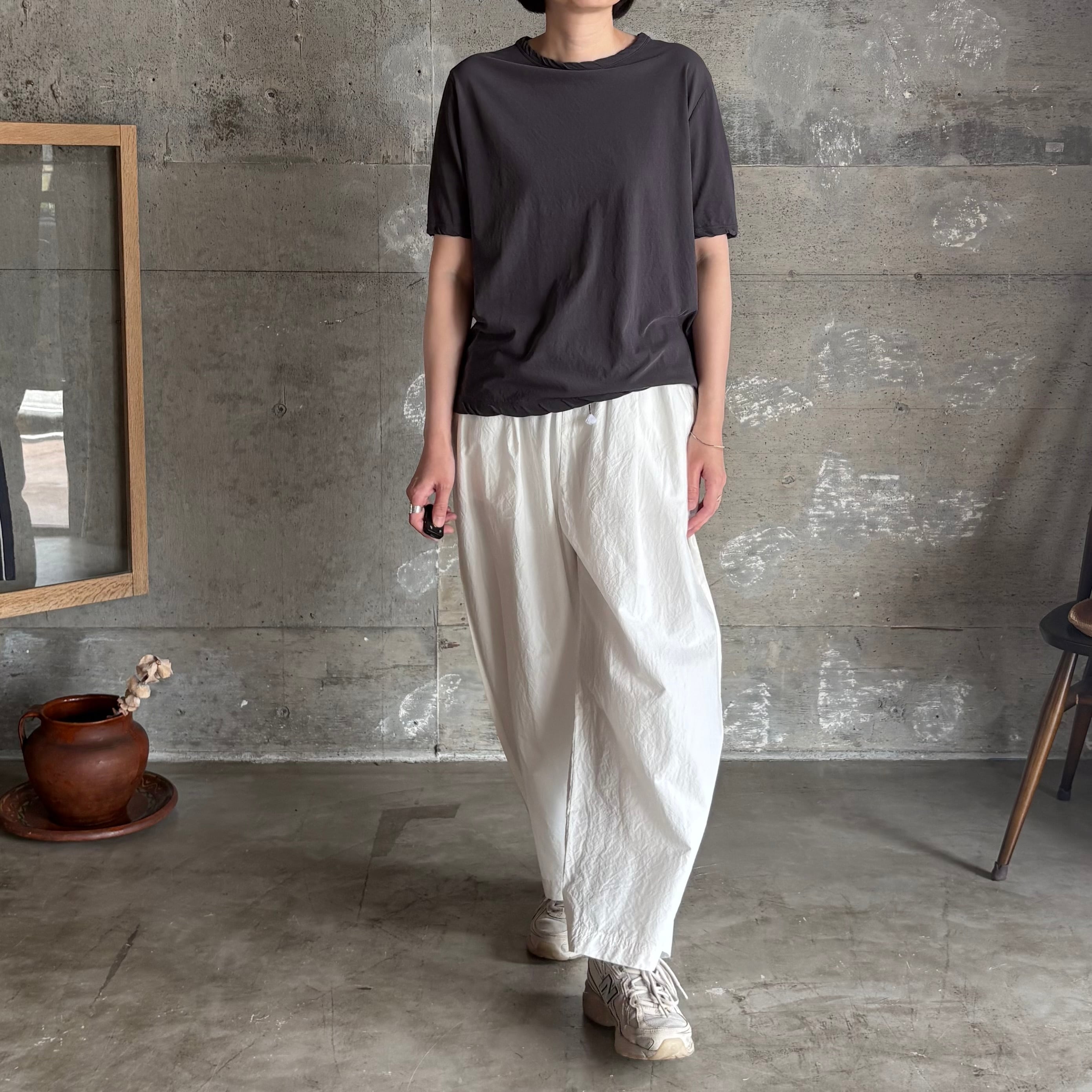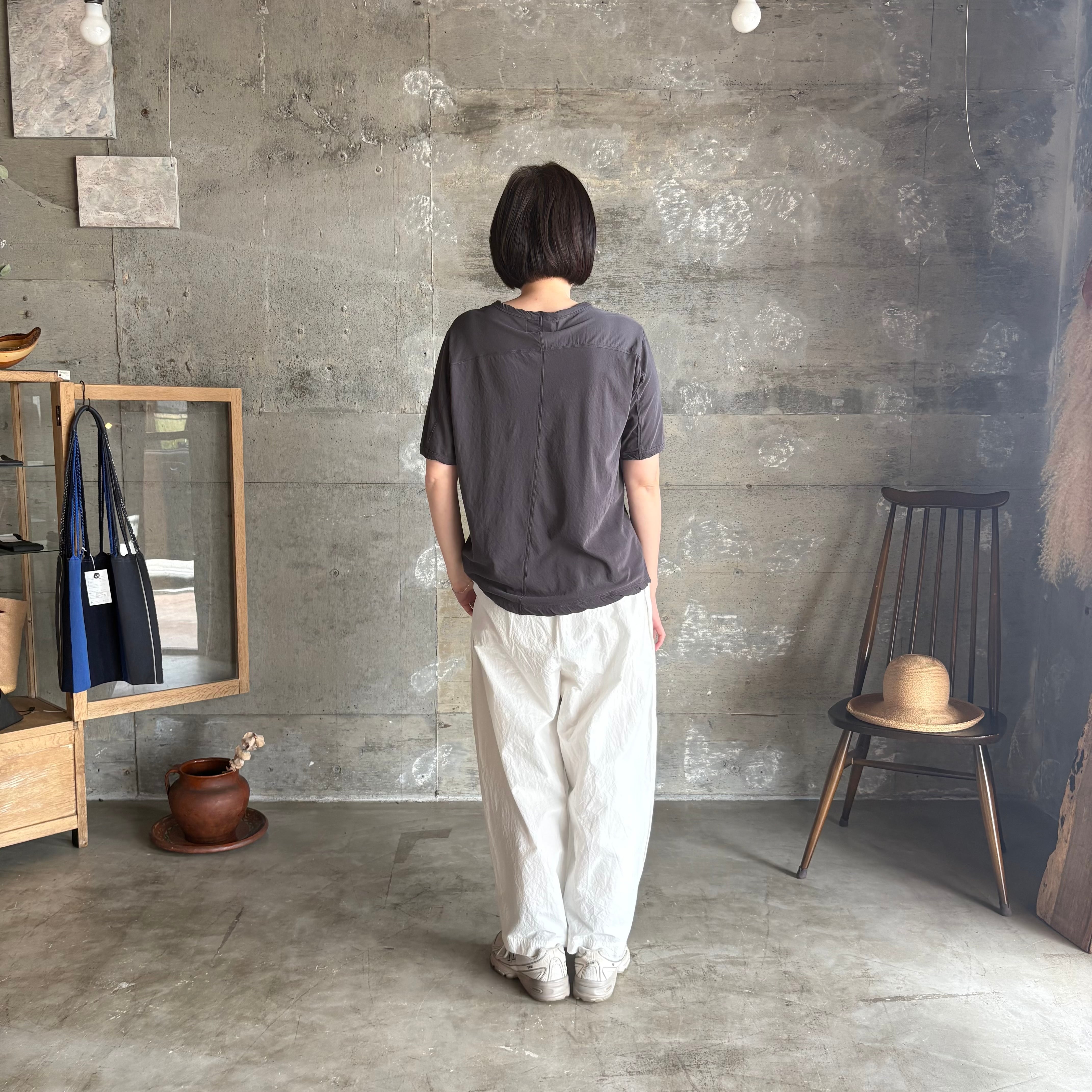 肌にまとわりつかず、風を纏っているような軽さ。肌に触れるたび少し涼しく、暑い日の頼れる1枚です。