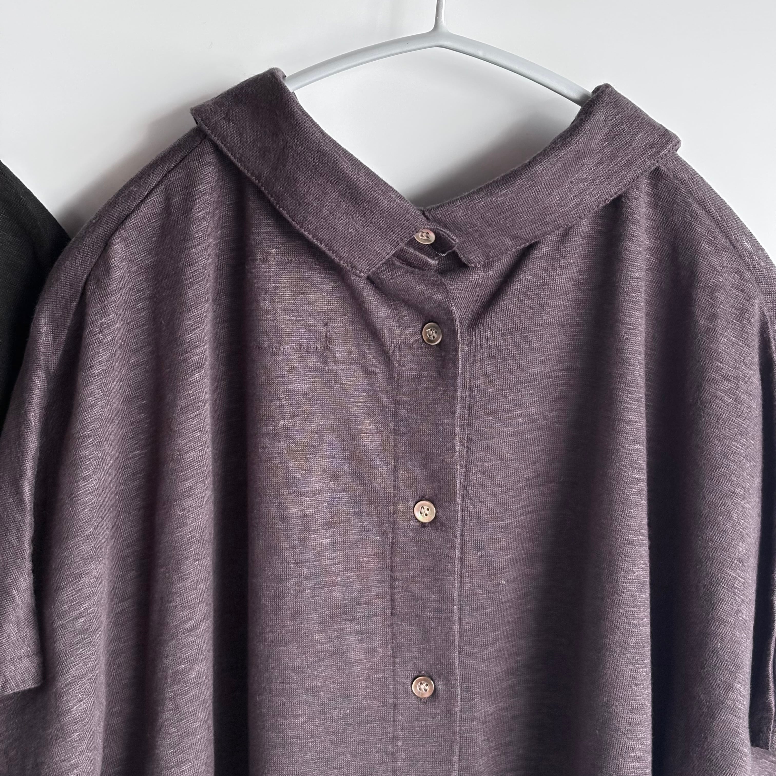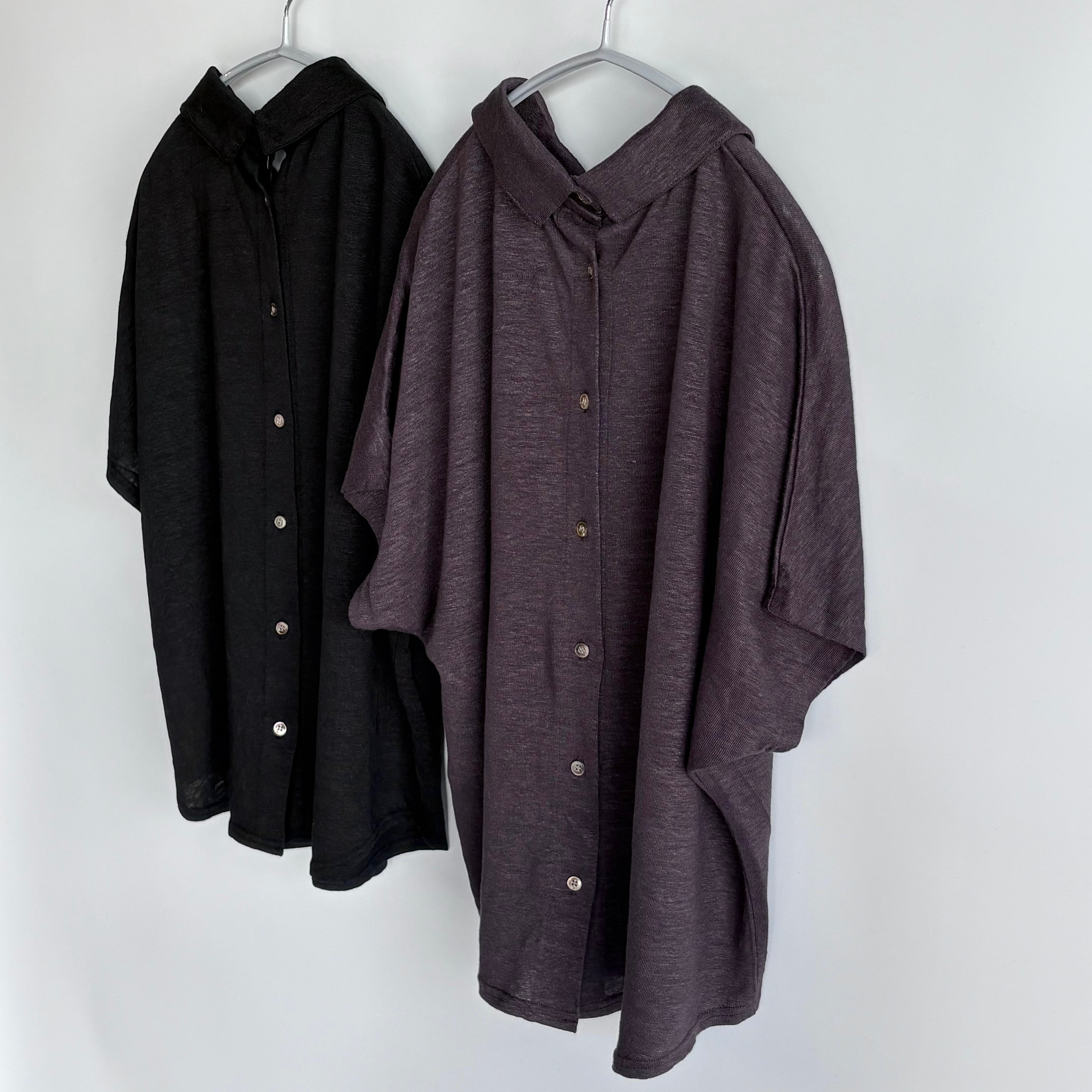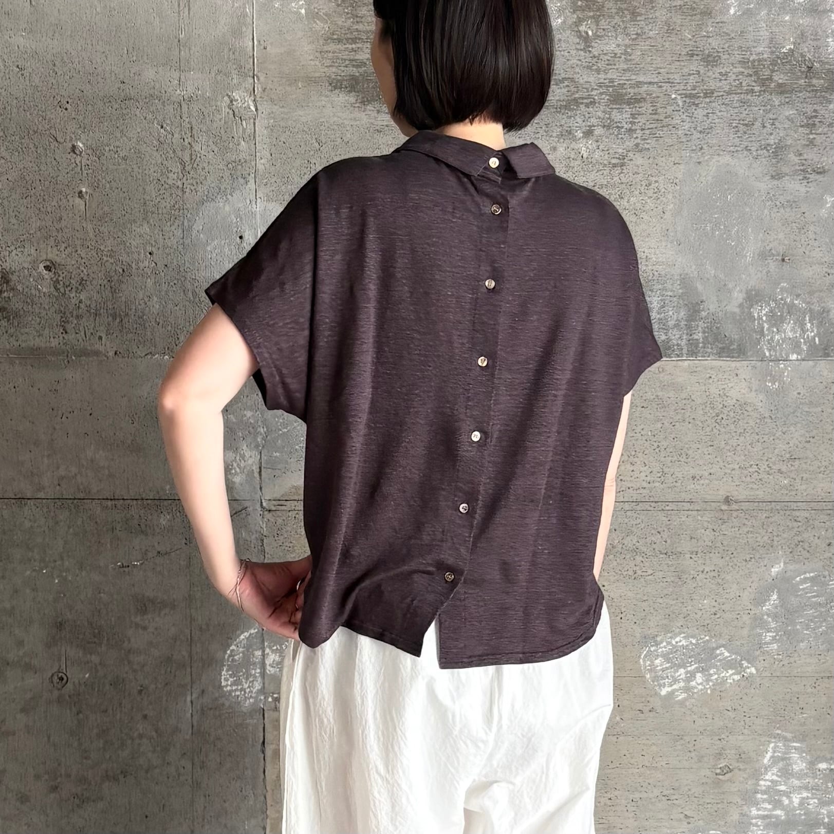 リネン特有のシャリ感の中に柔らかさもあり、肌にすっと馴染みます。気負わず、くたっとした表情がいい具合にこなれ感を演出してくれます。後ろボタンがアクセントになっています。