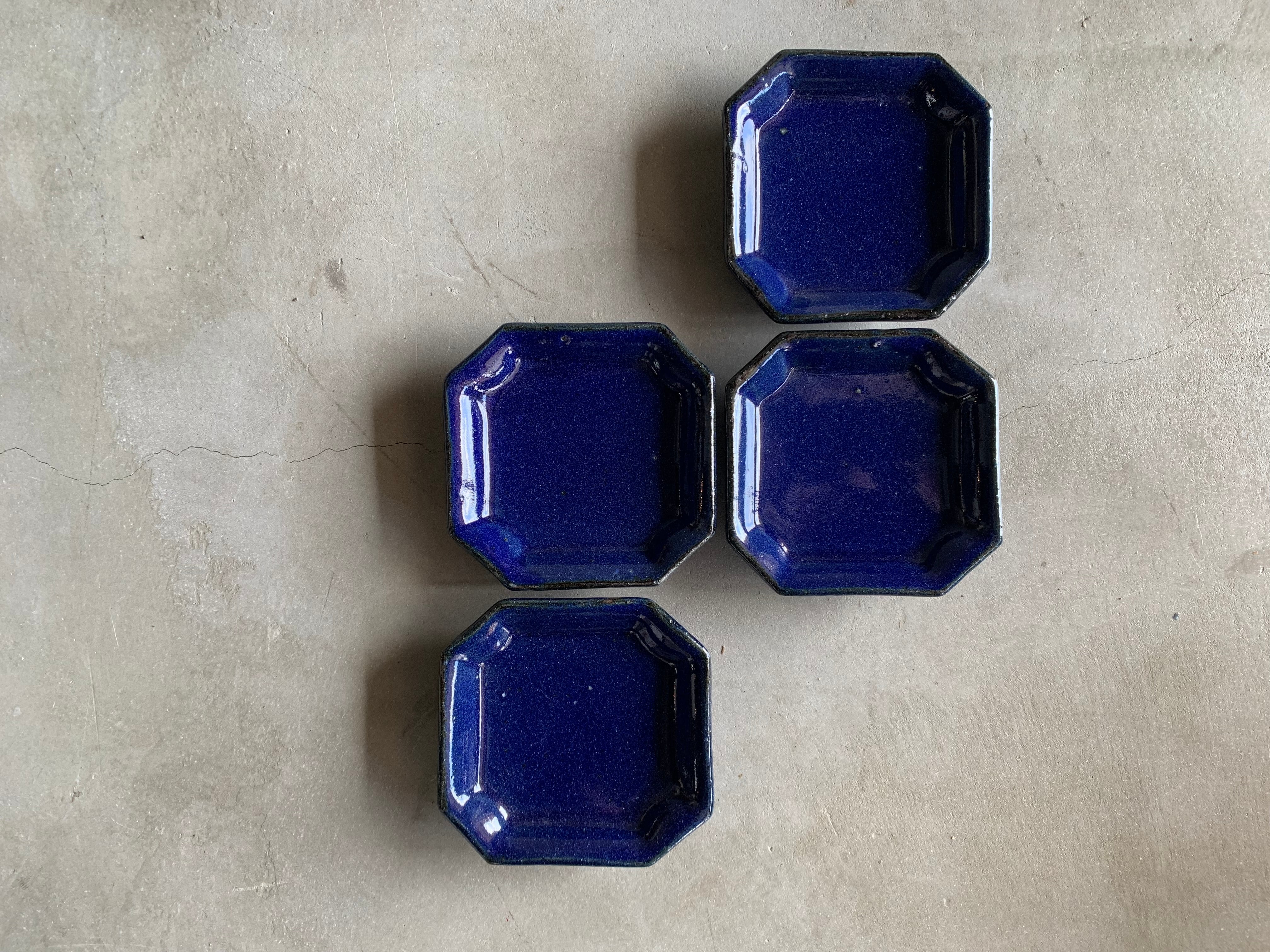 寺村光輔 / 瑠璃釉隅入小皿 (10*10cm) 益子焼 ルリ 陶器 陶芸家