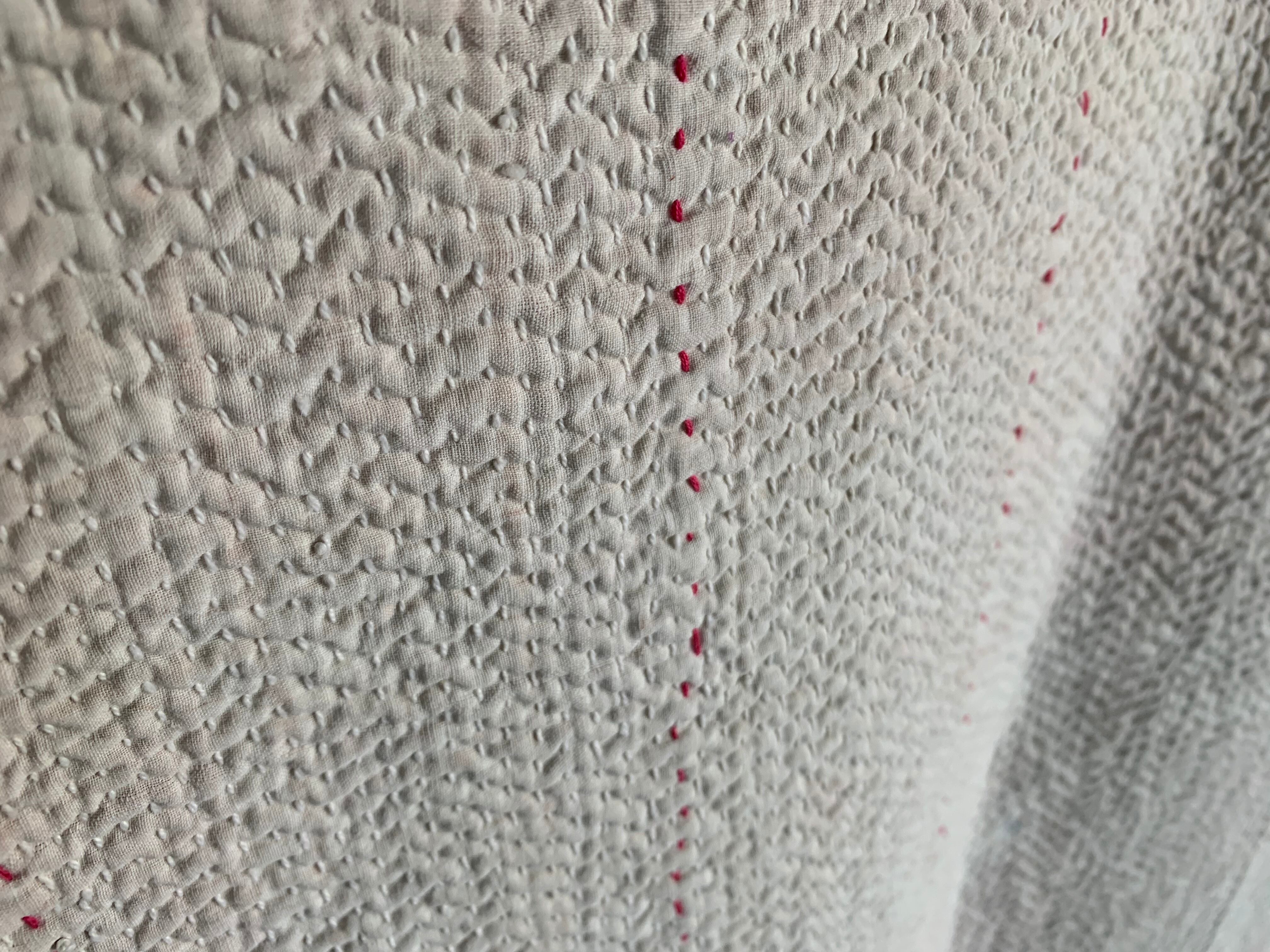 カンタとは刺し子という意味で、生地全面にとても細かく刺し子が施されています。