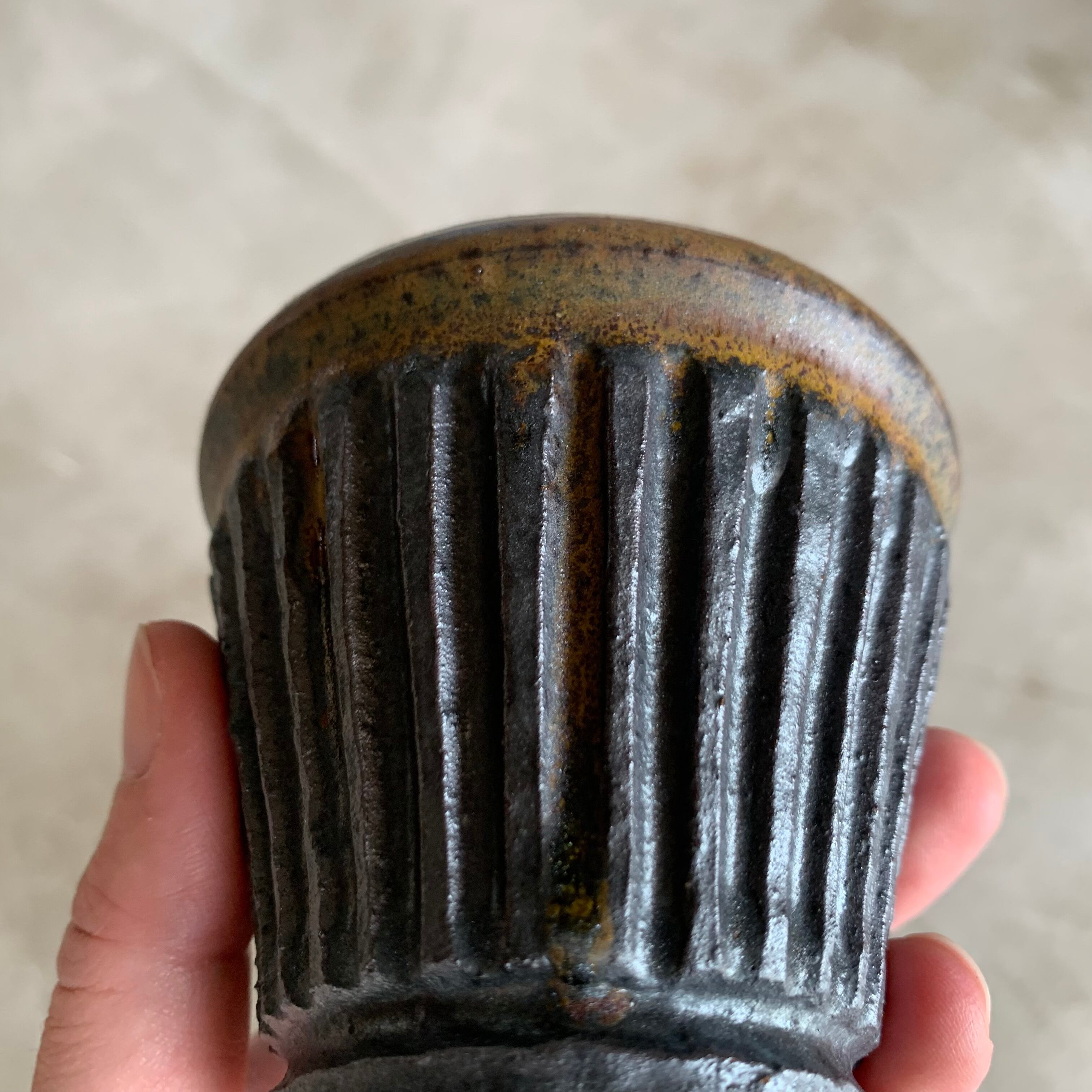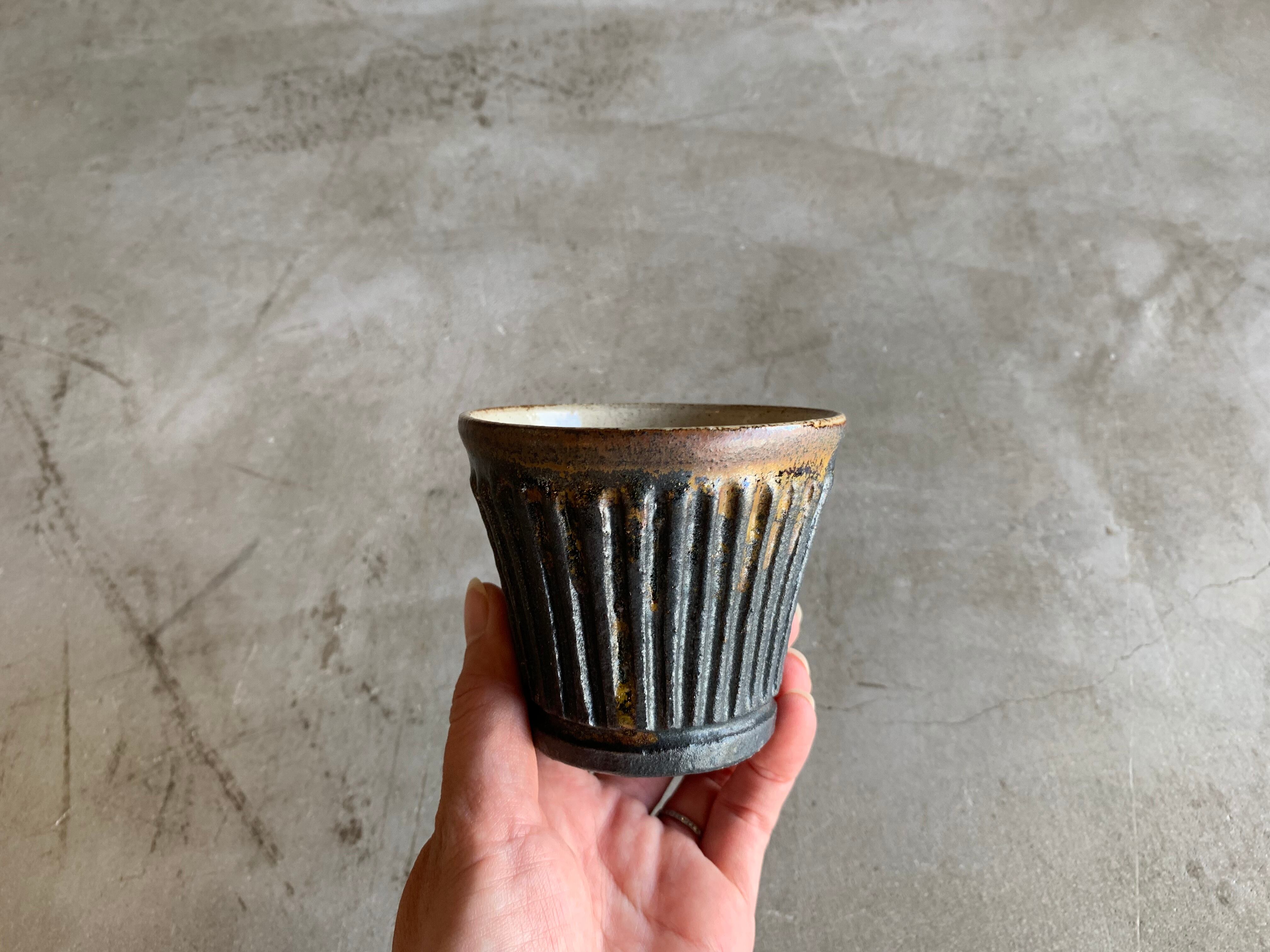 益子淳一 / 鉄黒しのぎ蕎麦猪口 そばちょこ 笠間焼 ブラック 陶器