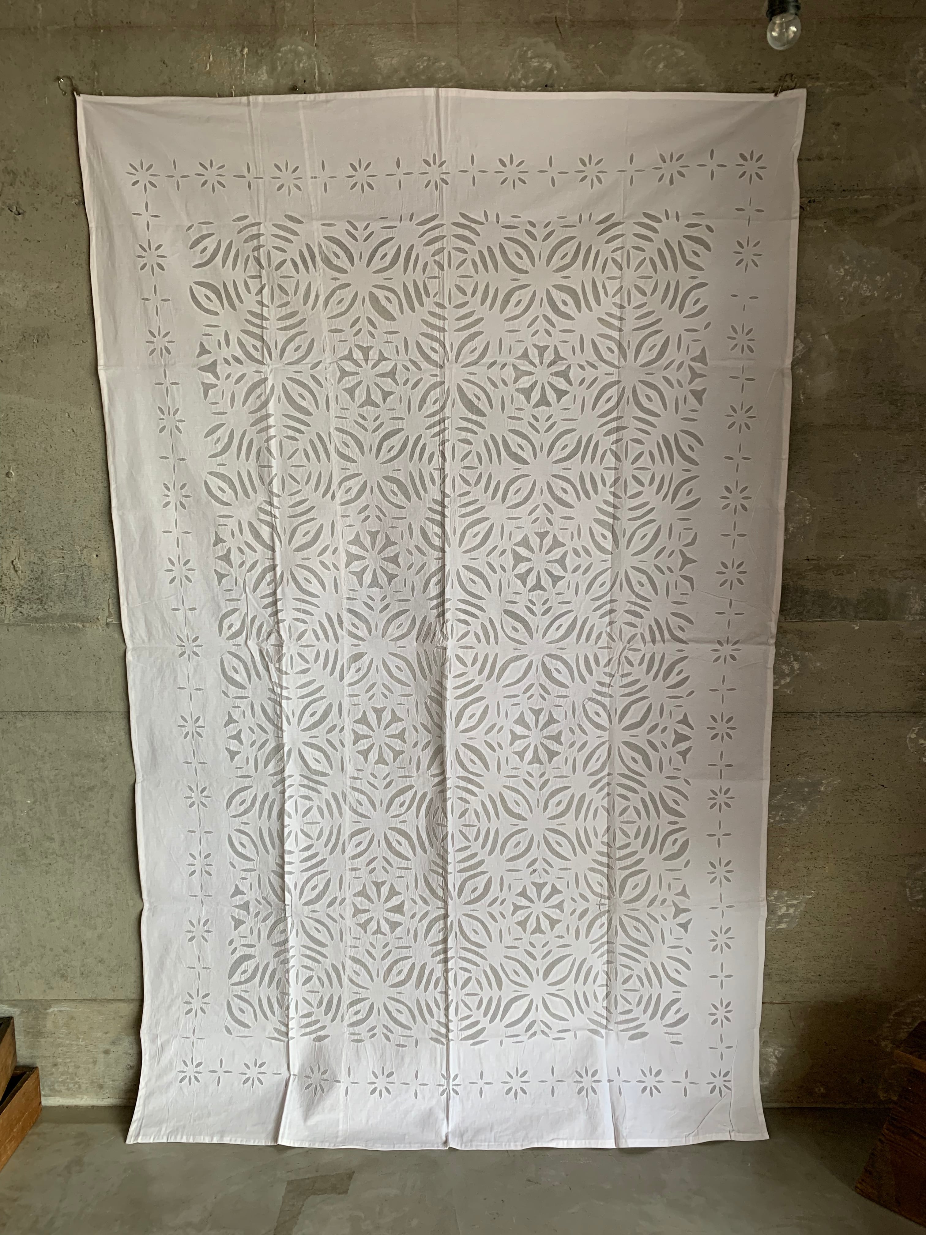 手しごと インド / カットワークキルト ⑤ 切り抜き刺繍 カーテン テーブルクロス コットン 綿 インテリア