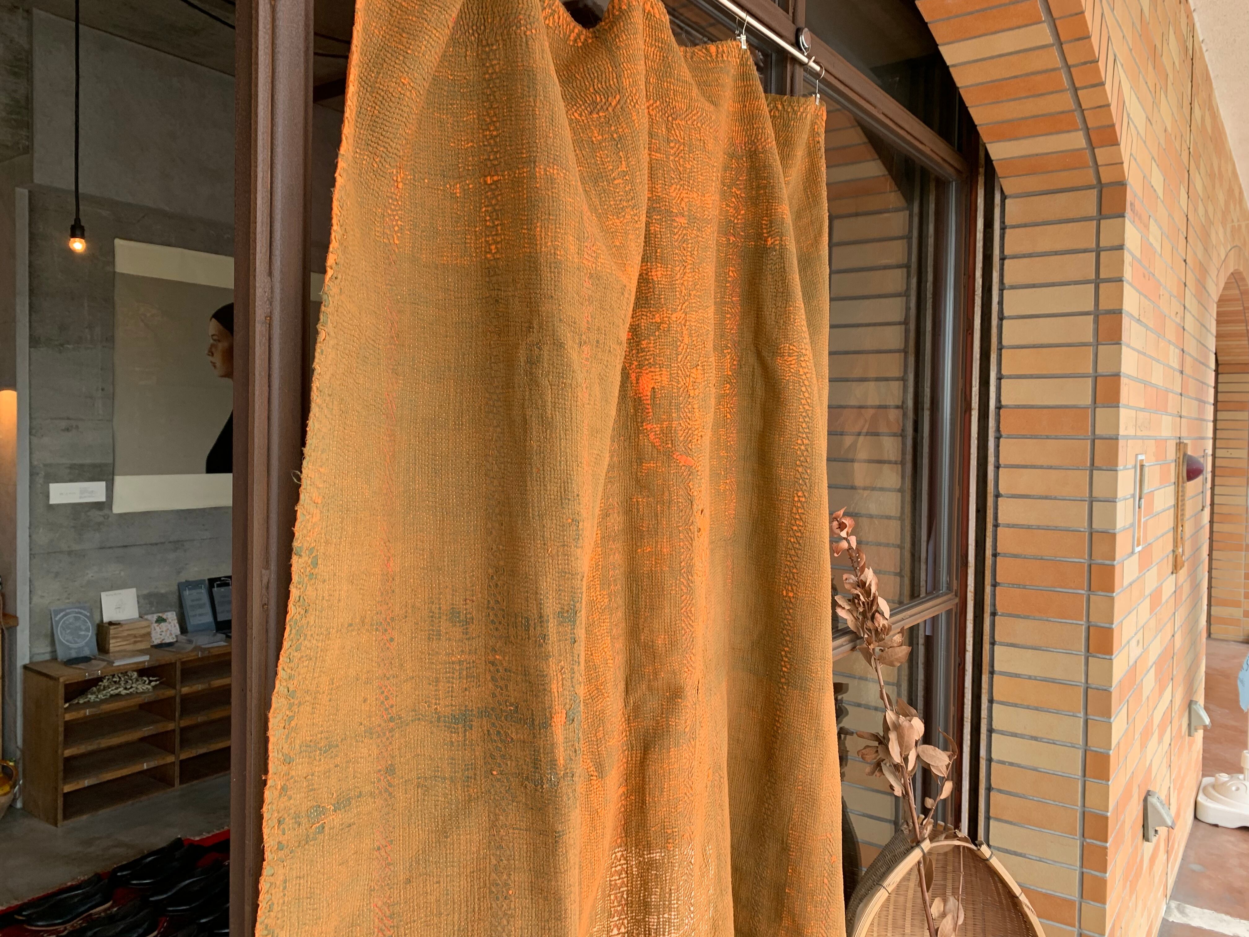 手しごと インド / 170*130 ヴィンテージ カンタキルト オレンジ 1 vintage 刺し子布