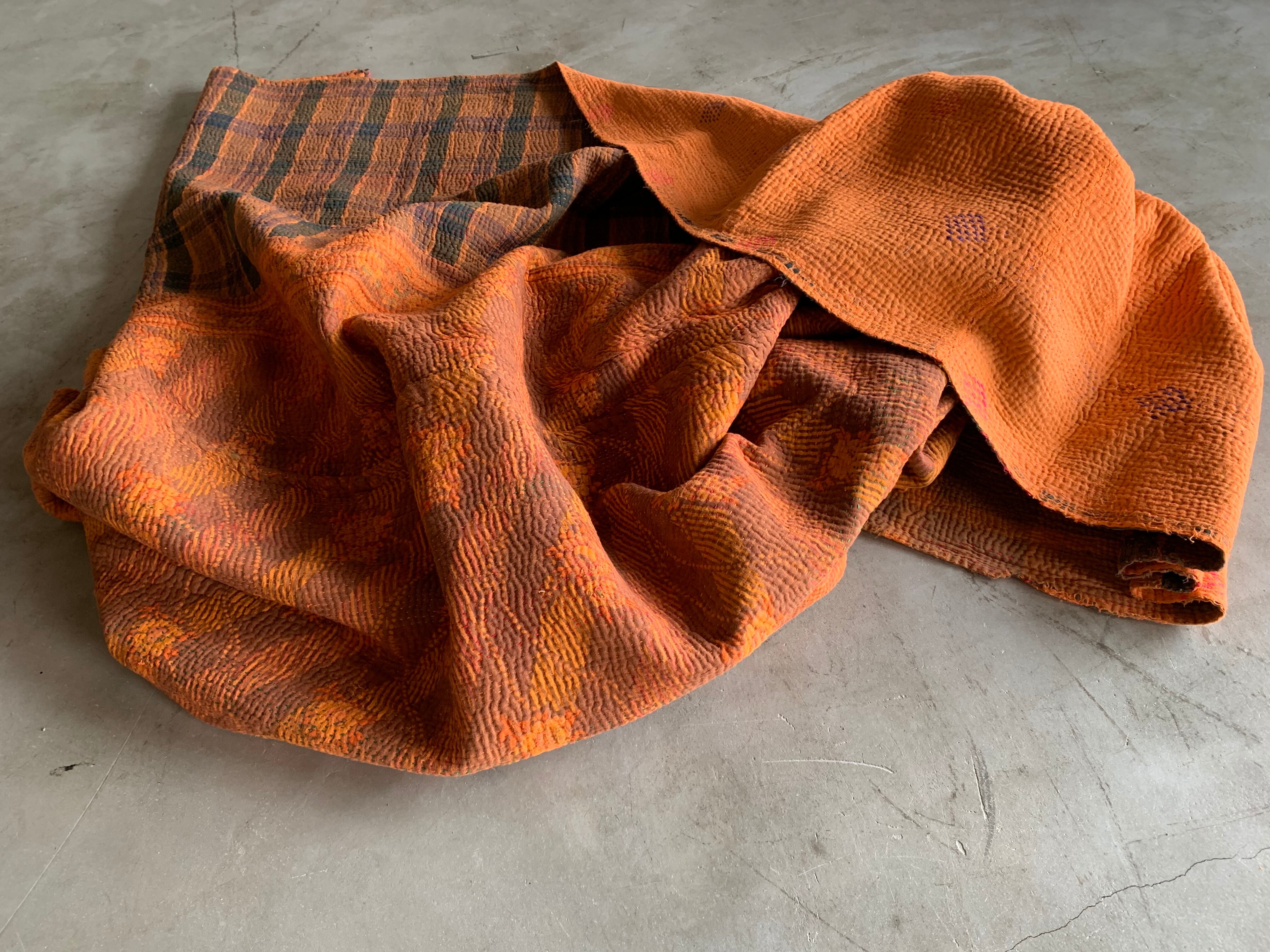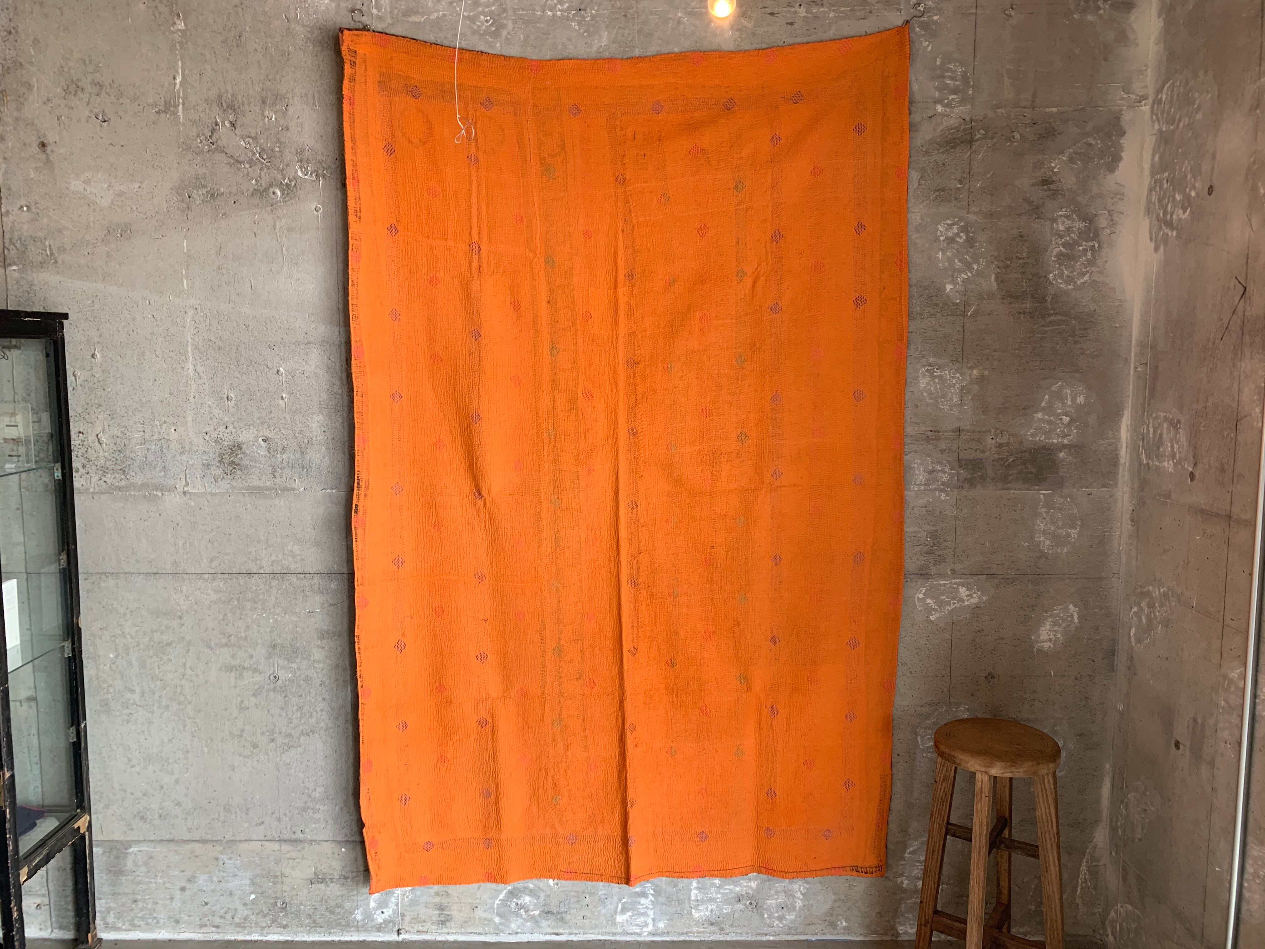 手しごと インド / 203*135 ヴィンテージ カンタキルト オレンジ 2 vintage 刺し子布