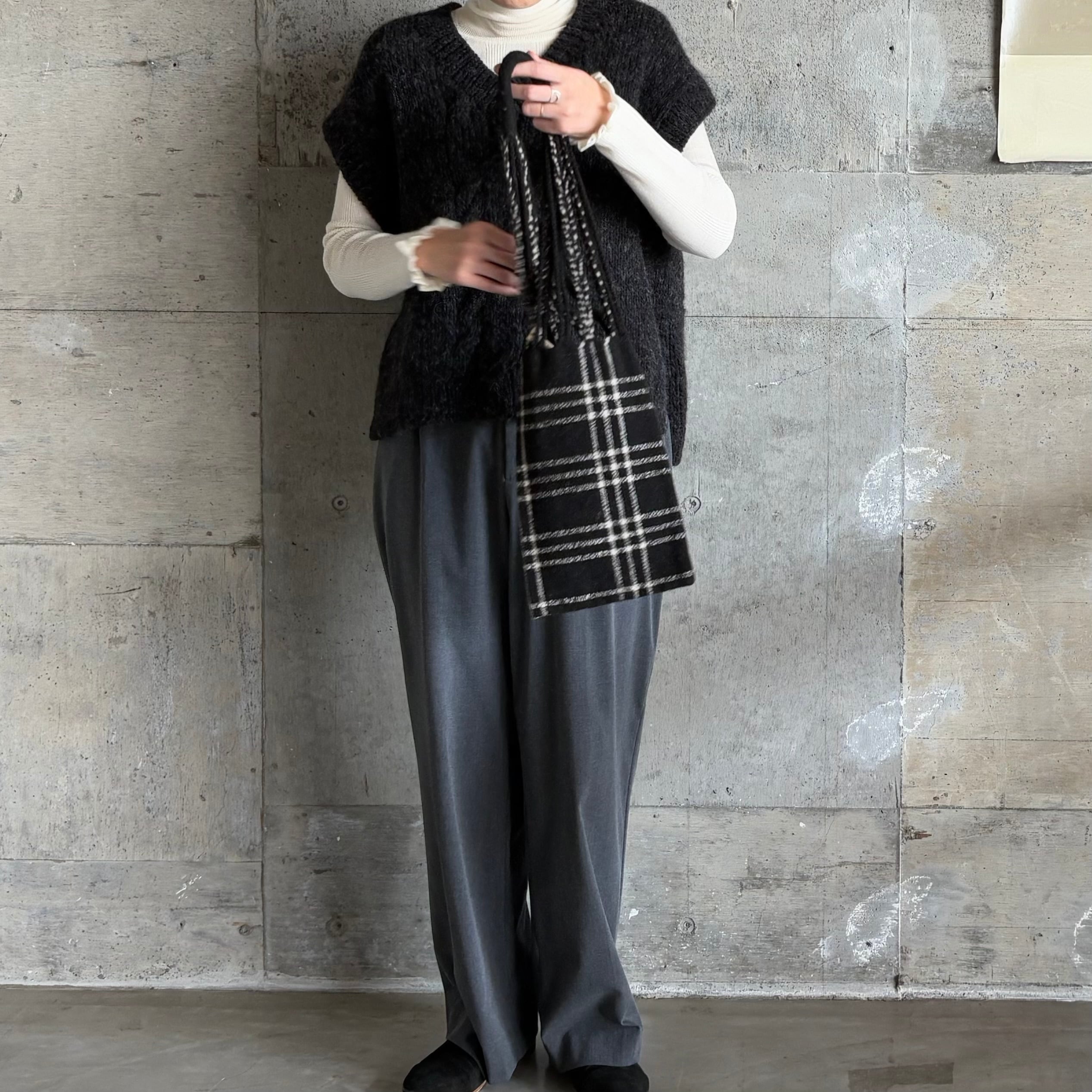 手しごと メキシコ / ウール ハンモックバッグ 29.5*18 HAMMOK BAG wool ① ブラック チェック ※レターパック対応