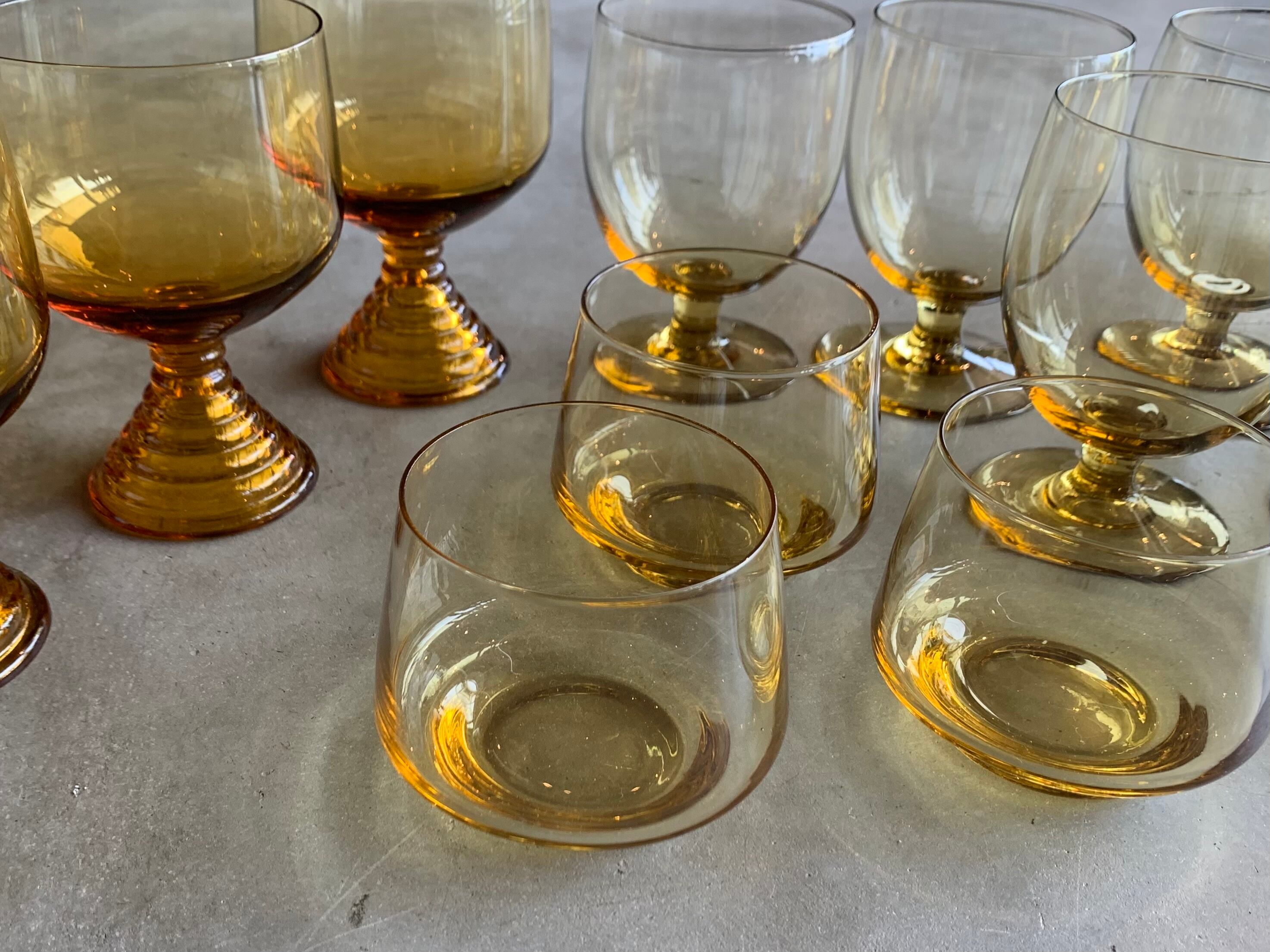 日本製 / デッドストックカップ 1960-1970年代 glass アンバー スタッキング可能 高さ約6.5cm