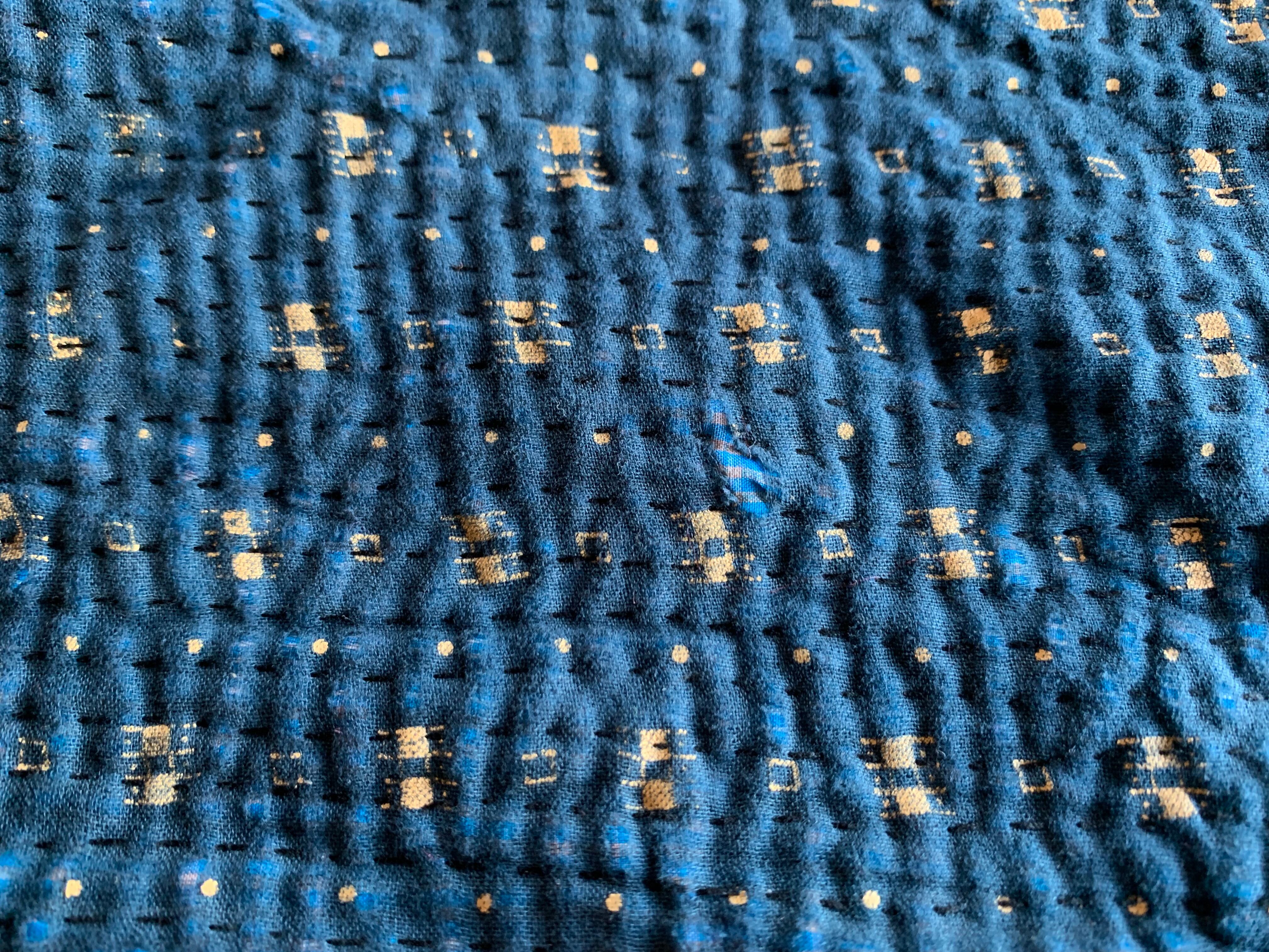 カンタとは刺し子という意味で、生地全面にとても細かく刺し子が施されています。