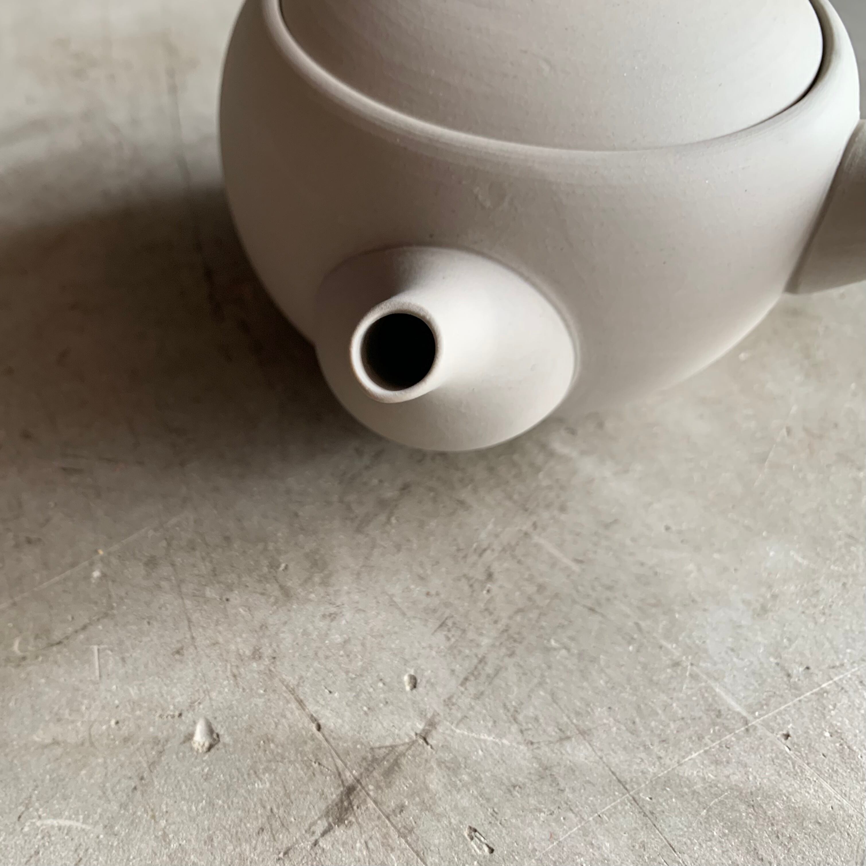 急須は淡いグレーベージュのような色味、丸みが優しい雰囲気を醸しだし食卓にやわらかな印象を与えてくれます。