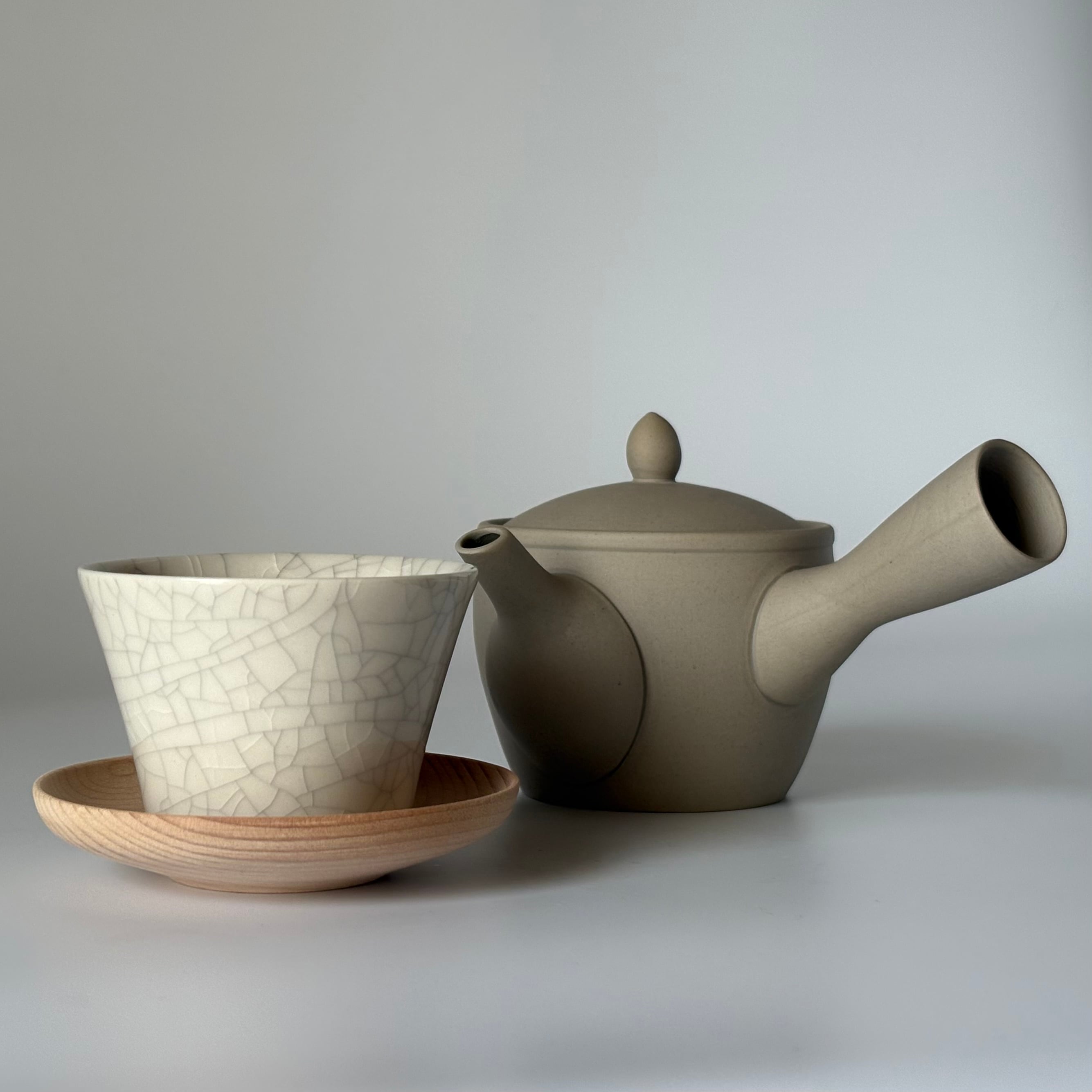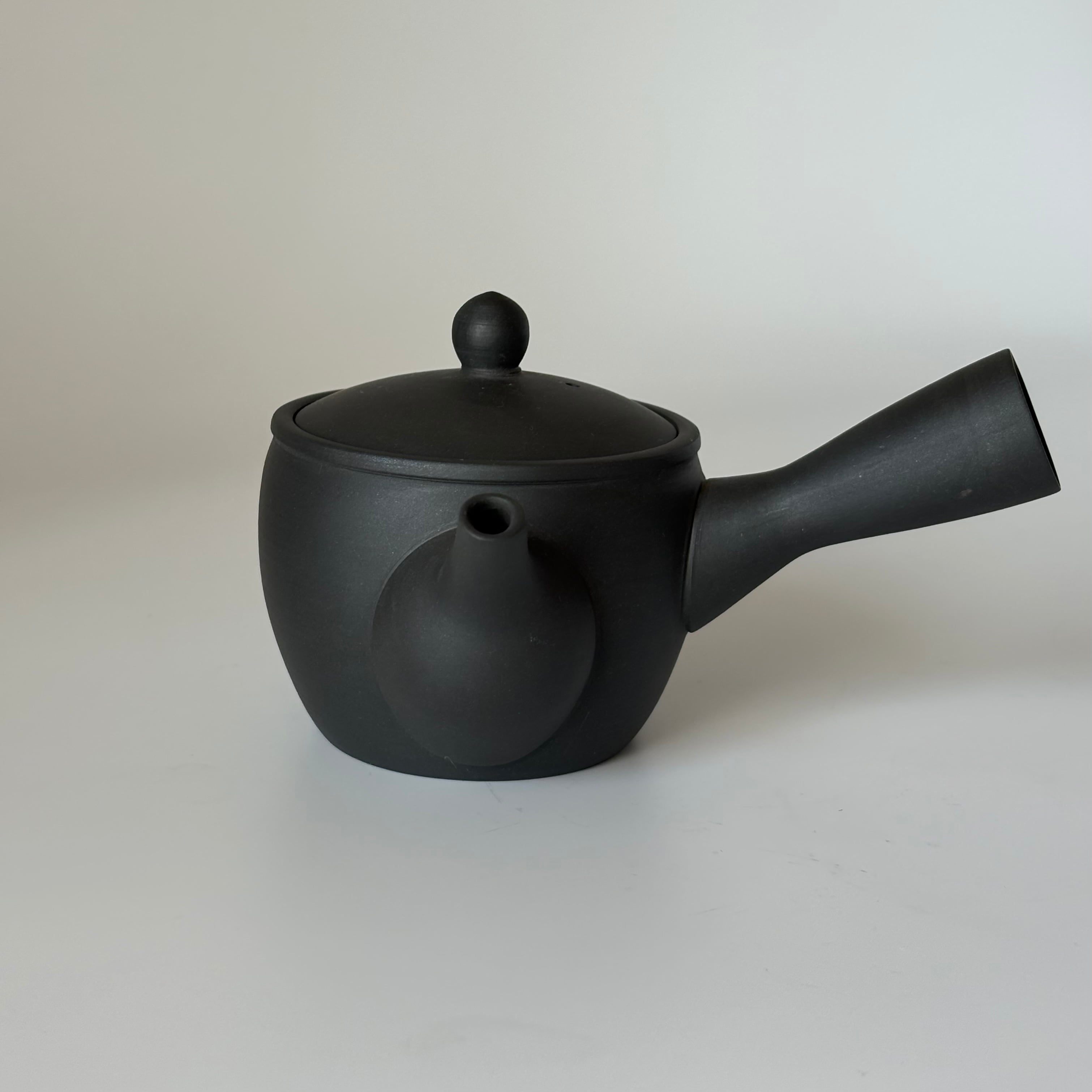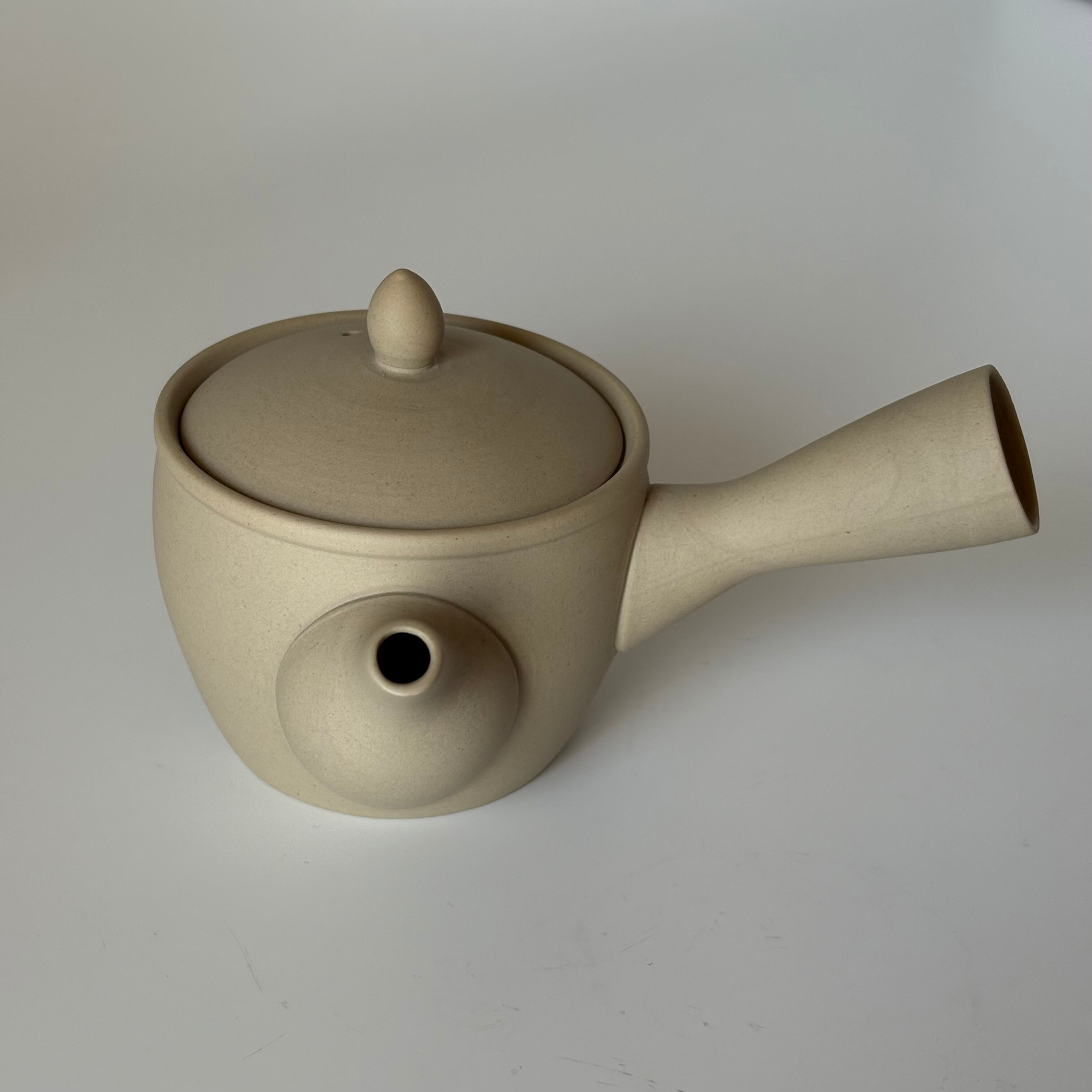 ころんと小さなサイズ感が可愛い急須です。高台湯吞み(70㏄)なら2杯ほど淹れてお楽しみいただけます。