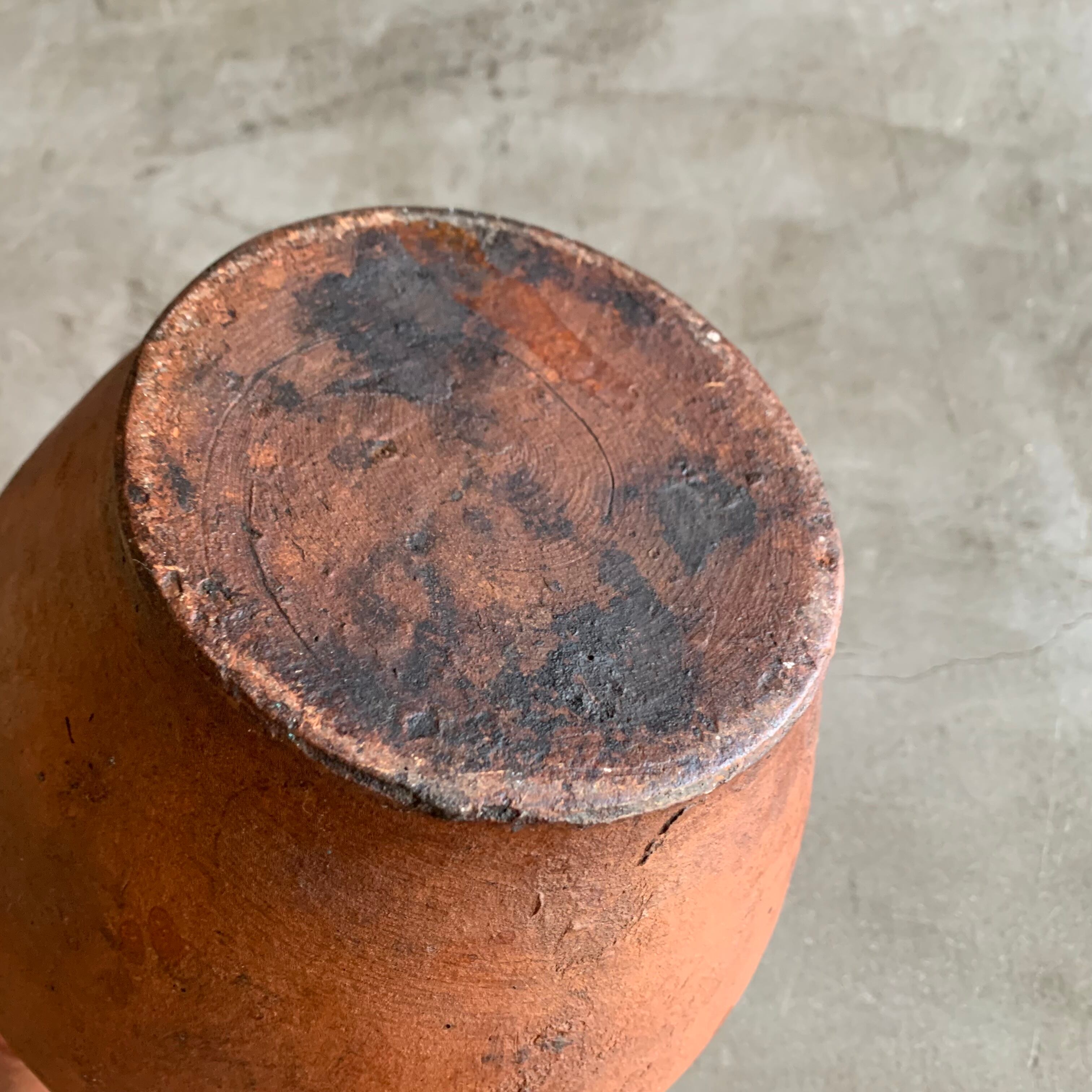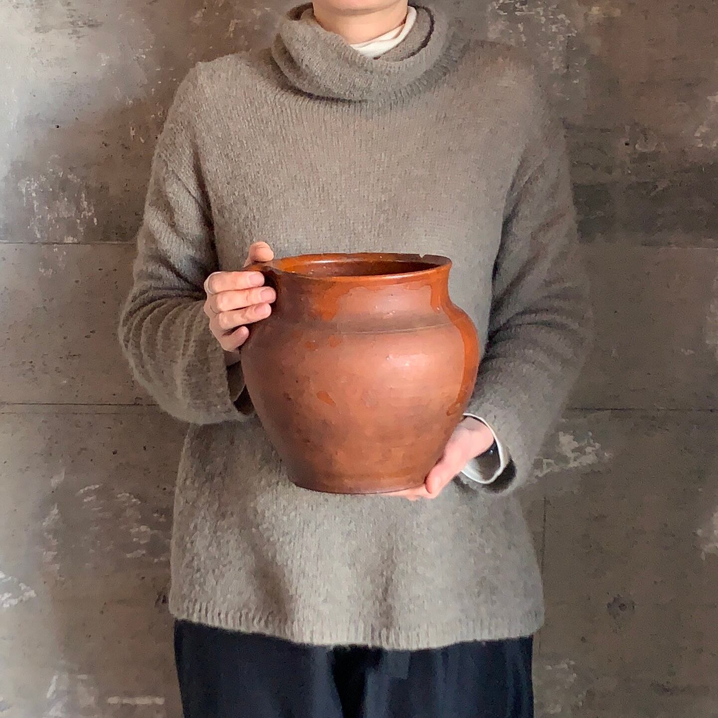 外側は素焼きのような表情、中に釉薬がかかっています。