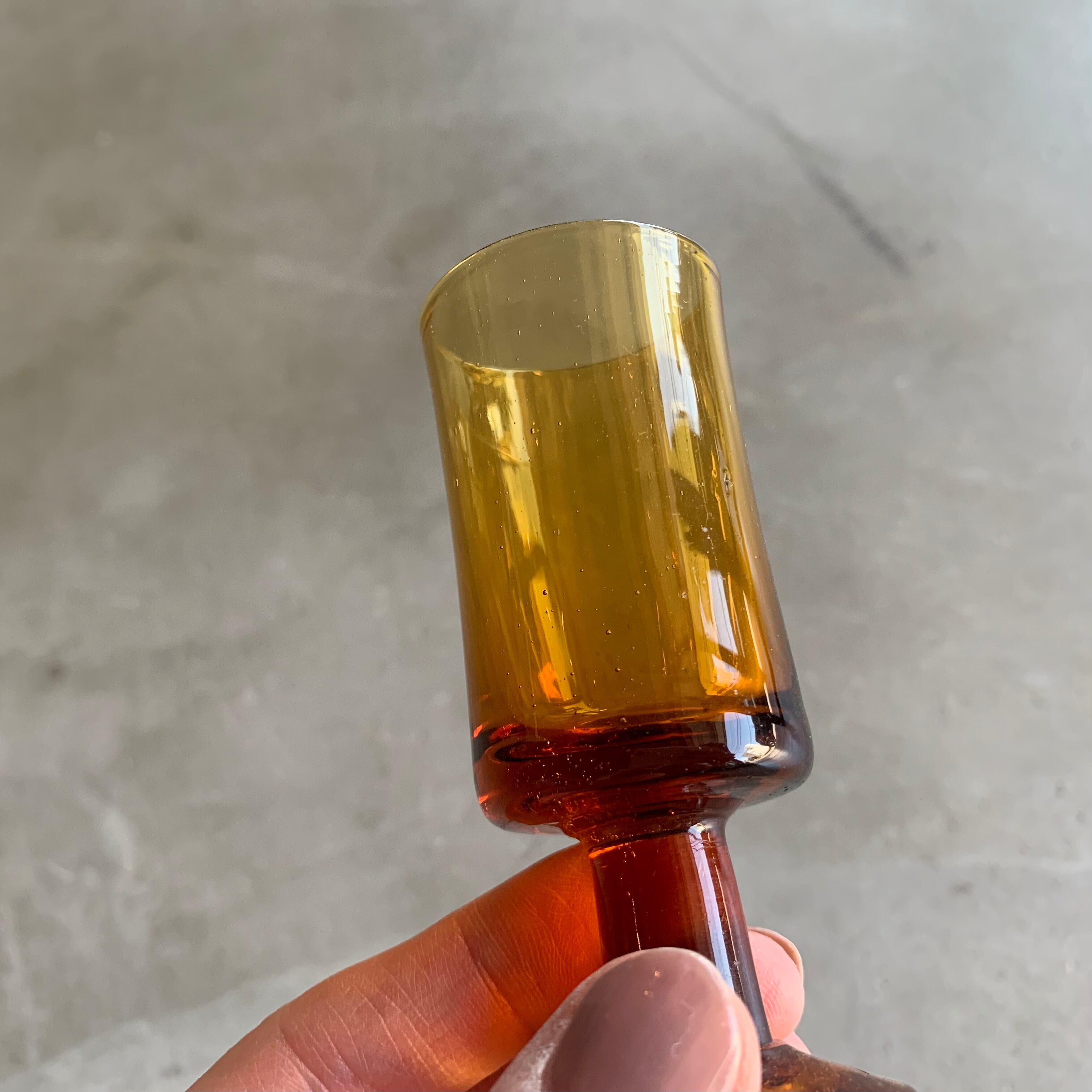 ぽってりとしたガラスが特徴的です。アンバー色がとてもきれいで目を惹くグラスです。