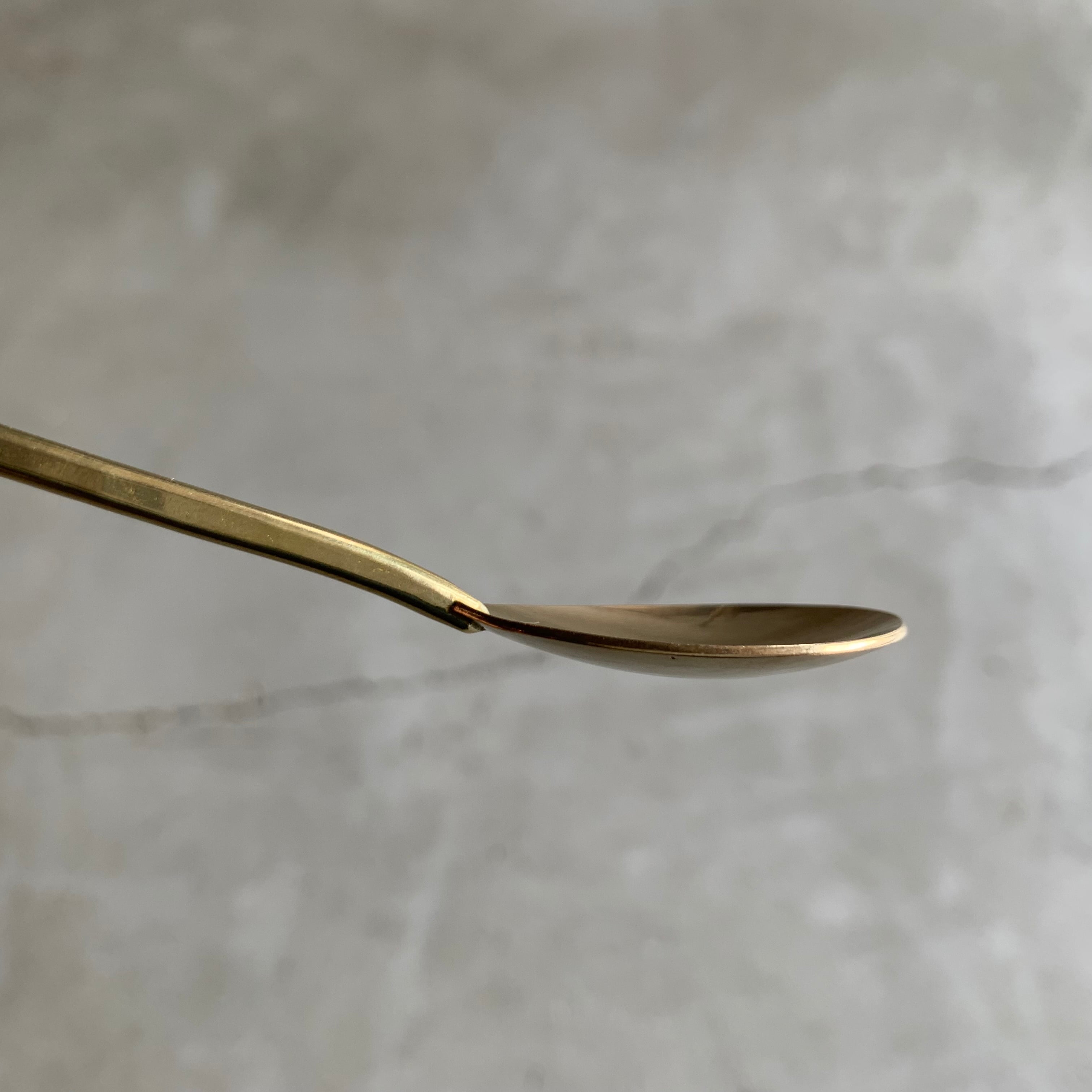 小ぶりのデザートスプーンです。上品で持ち手の部分が細く、細かな叩き仕上げが美しい絵になるカトラリーです。真鍮の深みをお楽しみください。
