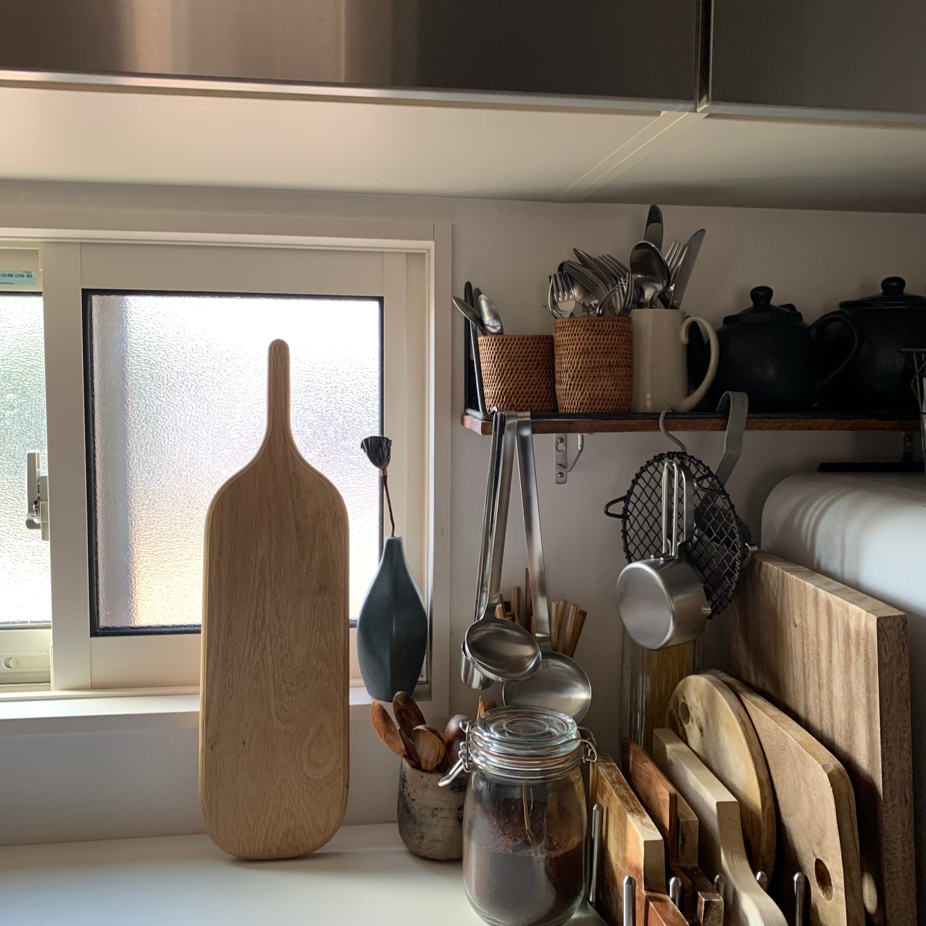 強度が高く耐久性にも優れているナラの木。木目や色味に温かみがありキッチンに馴染みます。