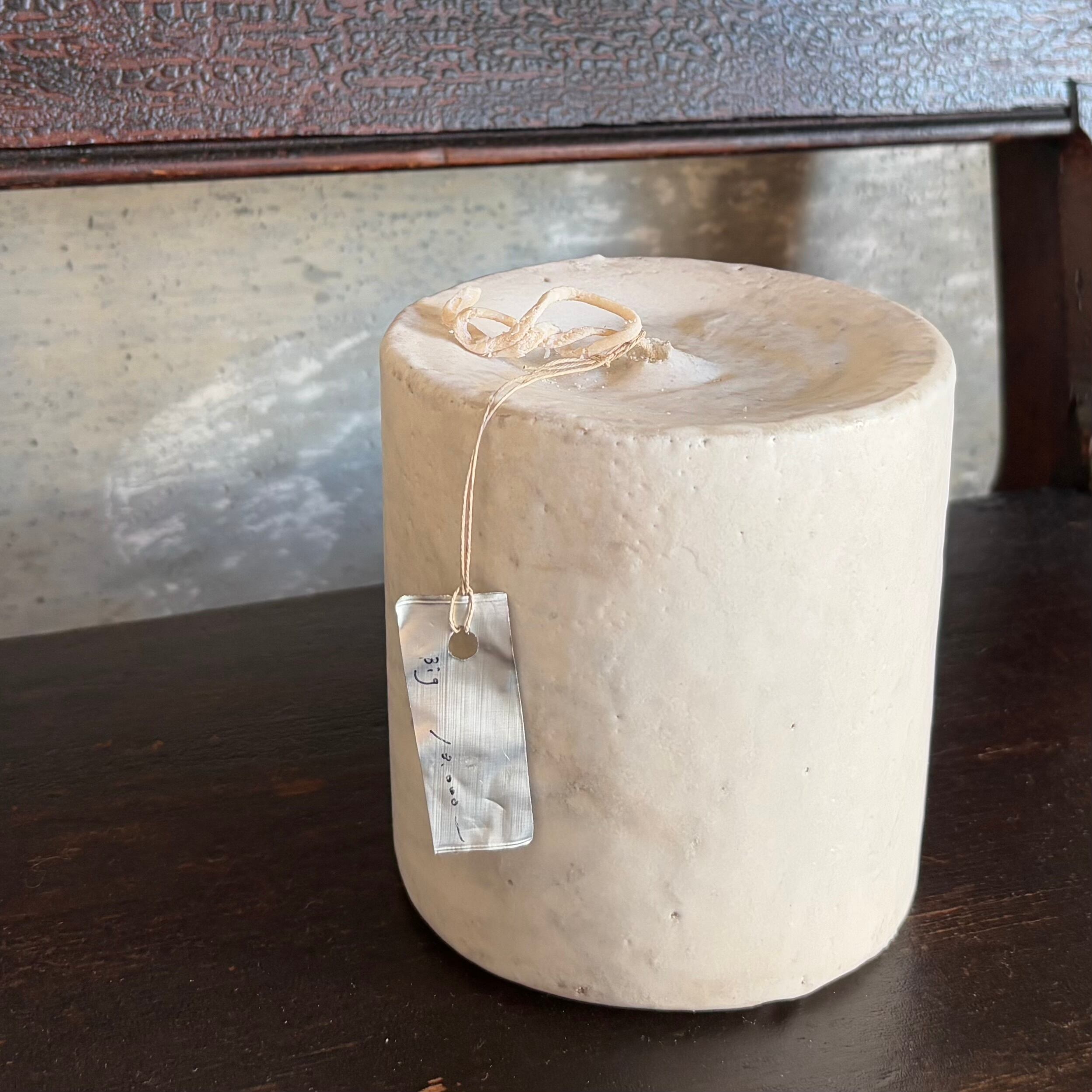 灰と土を使い蝋に何度も重ね染められています。中は白の蝋燭で、火を灯すと染め部分とのグラデーションで表情豊かに灯ります。