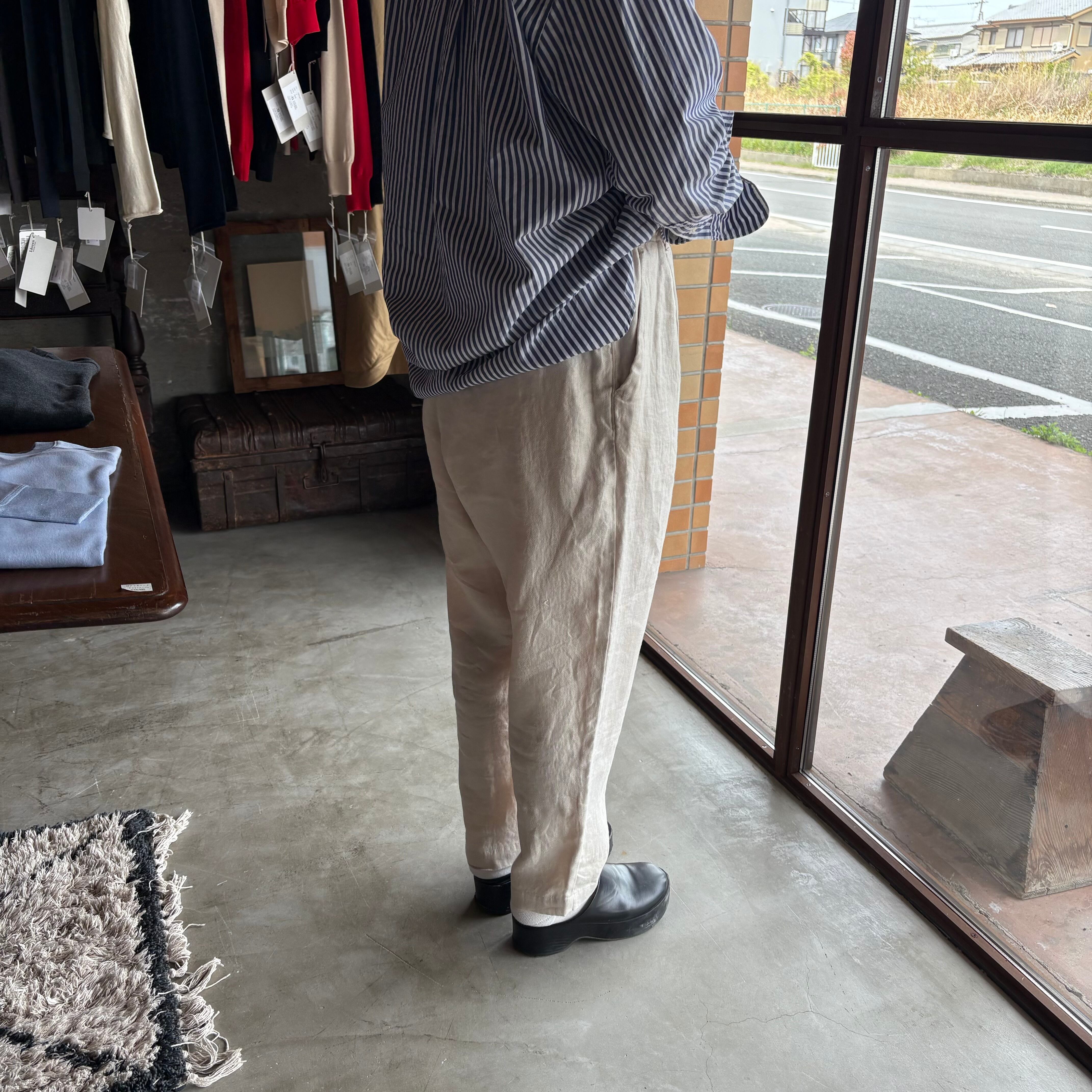 hands of creation ハンズ オブ クリエイション / 40/-twill linen起毛サルエル風テーパードパンツ オフ