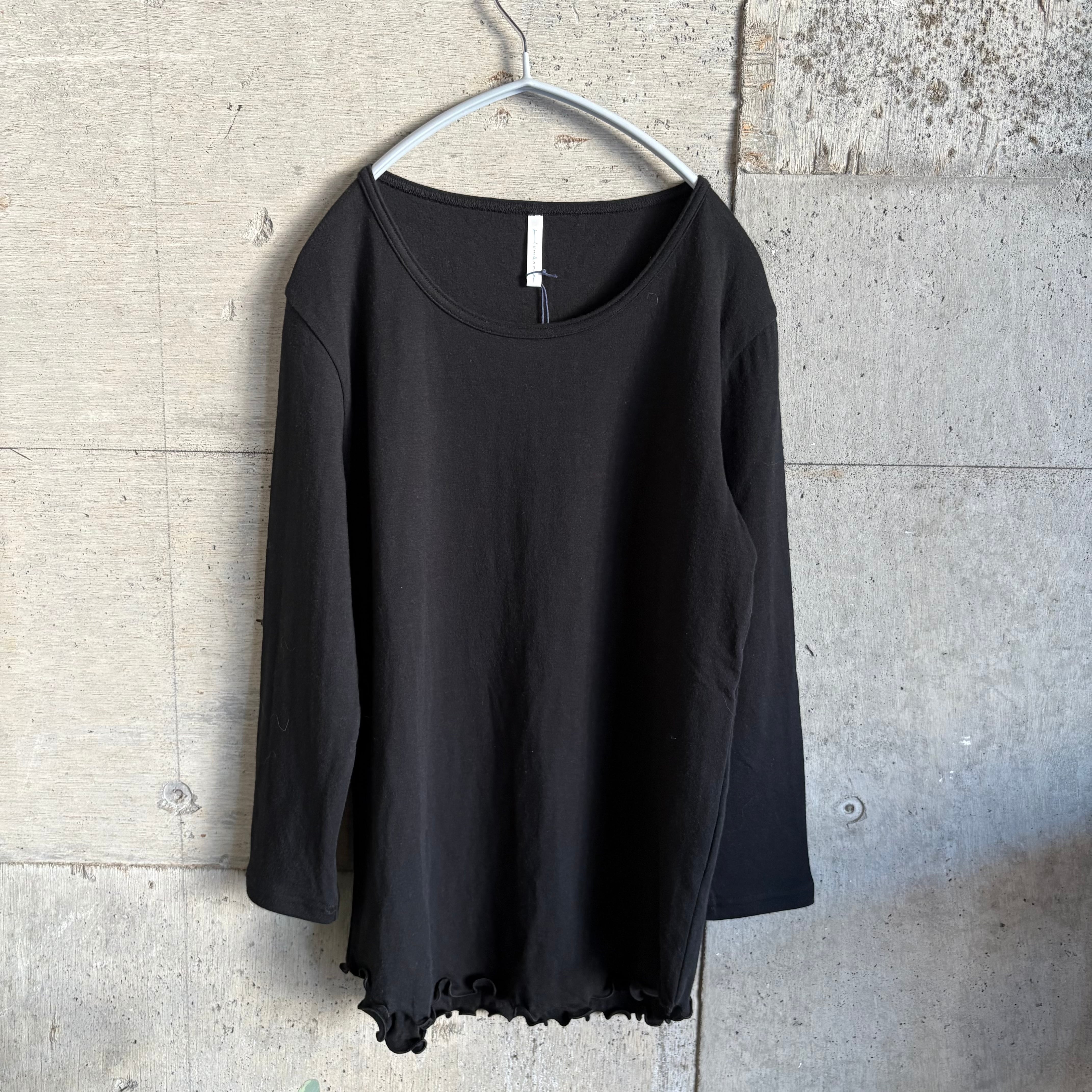 首回りのクルーネックは開きすぎず、詰まりすぎないちょうどよいラインです。