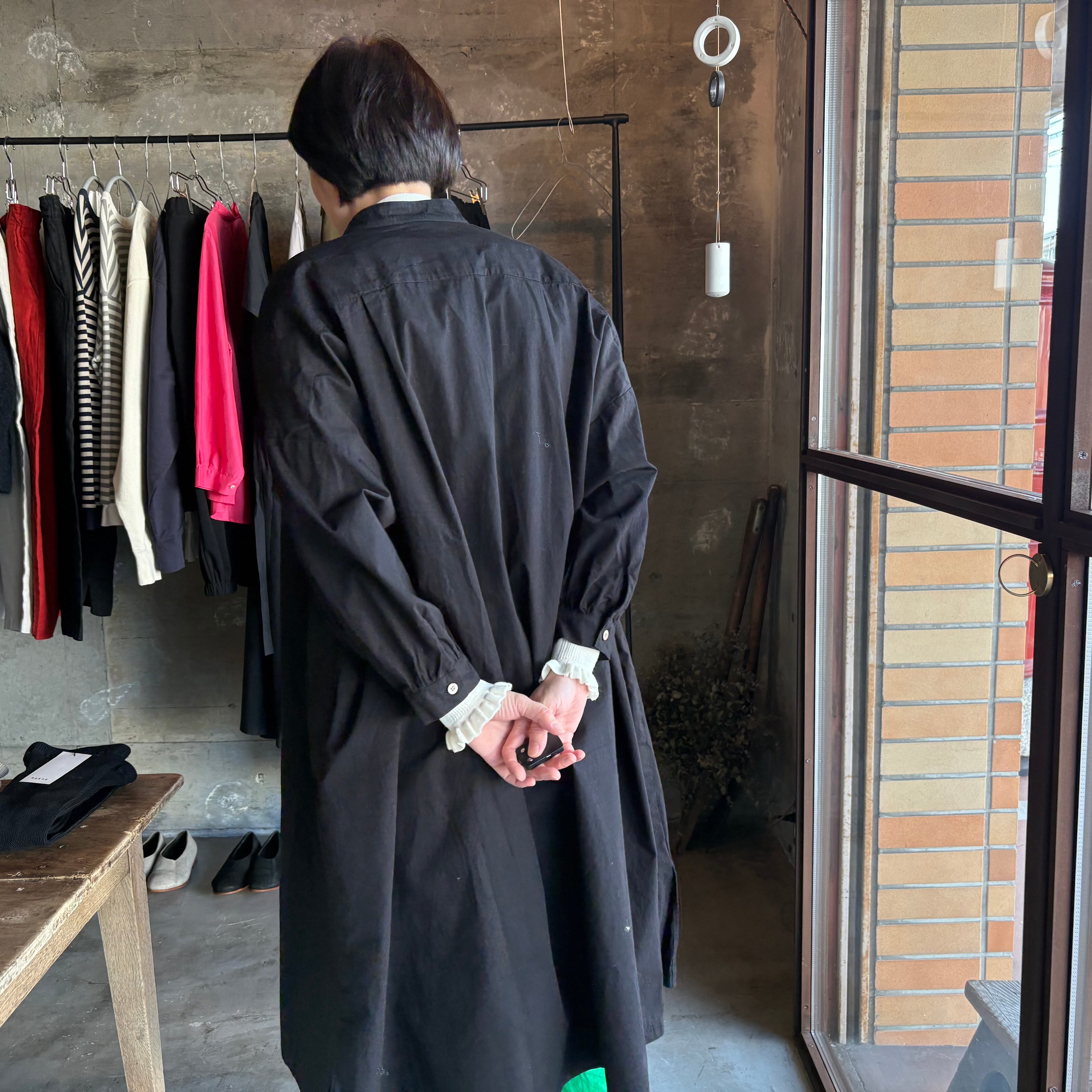 OUVERT ウーヴェル / リサイクルウェザー ドロップショルダーシャツワンピース ブラック