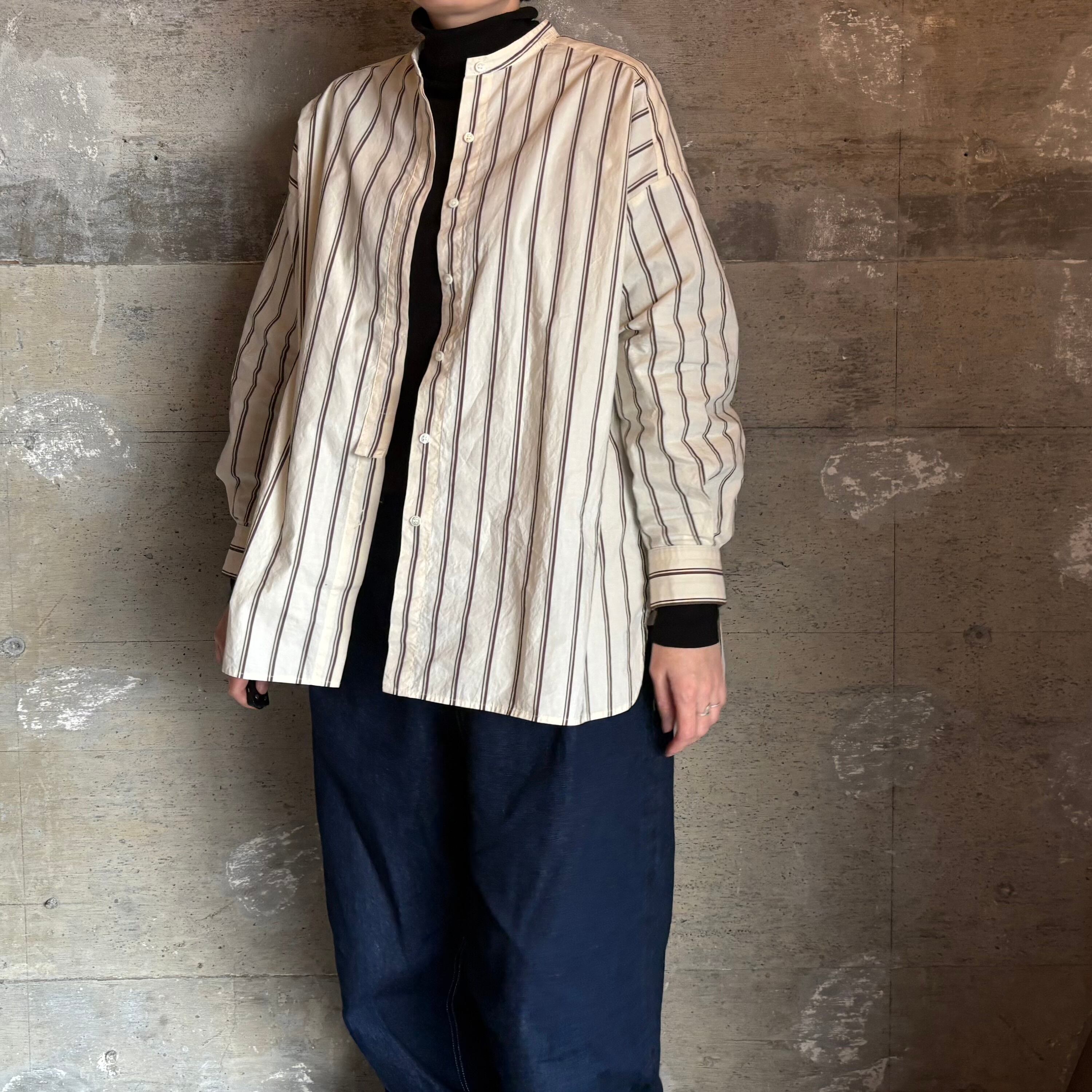 hands of creation ハンズ オブ クリエイション / 60/-タイプライターストライプPTバンドカラーチュニックシャツ